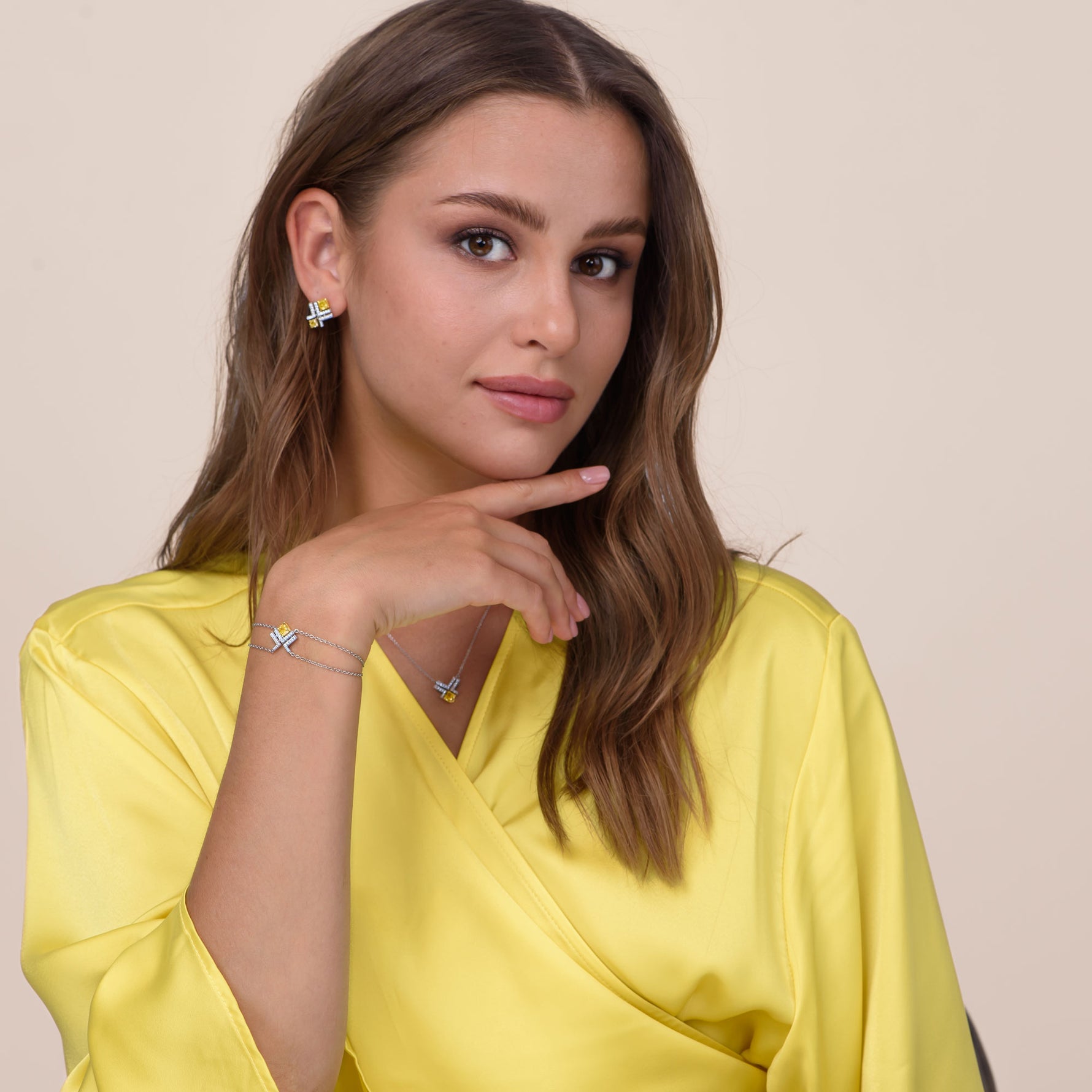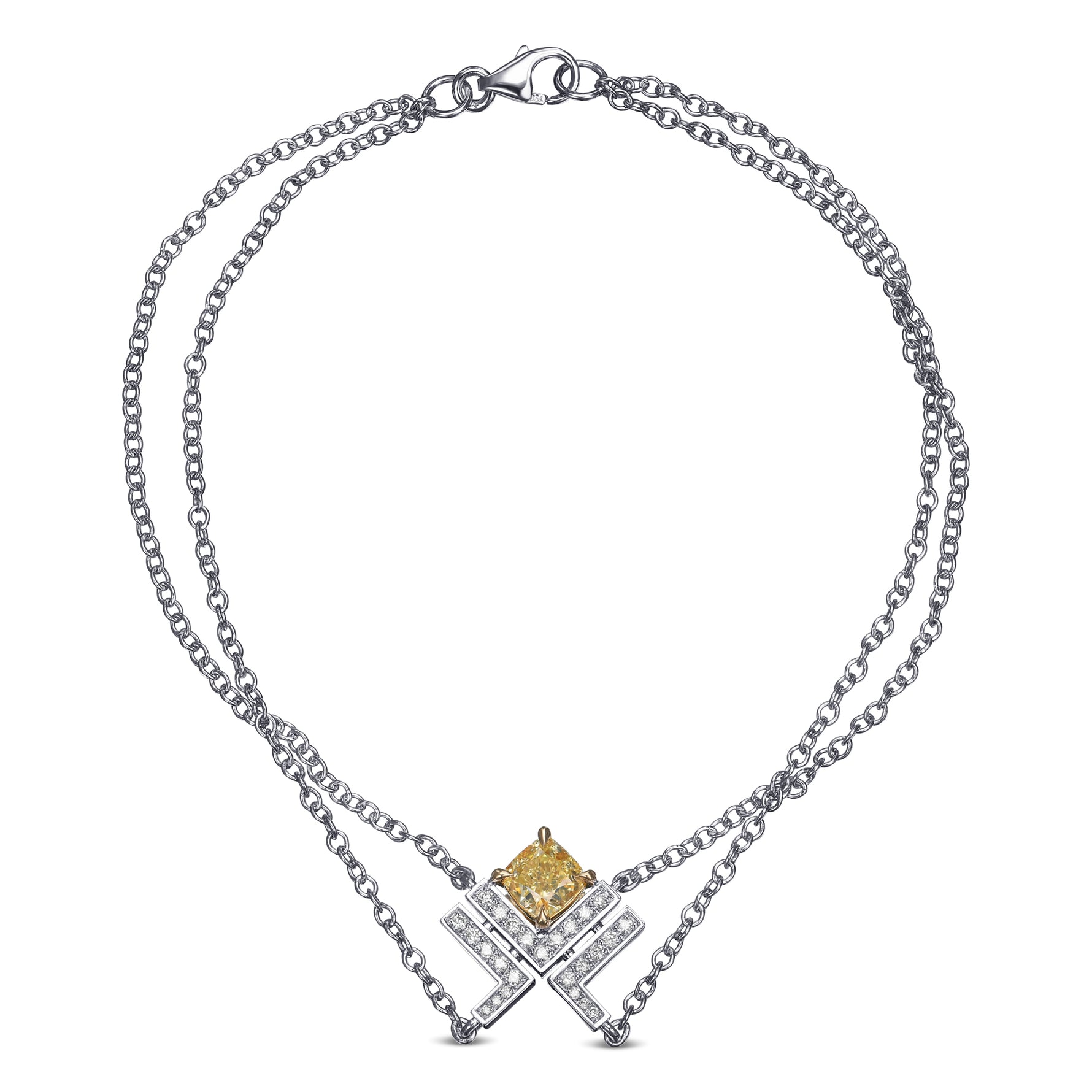 A sophisticated Fancy Yellow cushion diamond bracelet in LEIBISH’s signature design, mounted in 18K white and yellow gold and highlighted by a GIA-certified 0.65 ct Fancy Yellow cushion diamond.