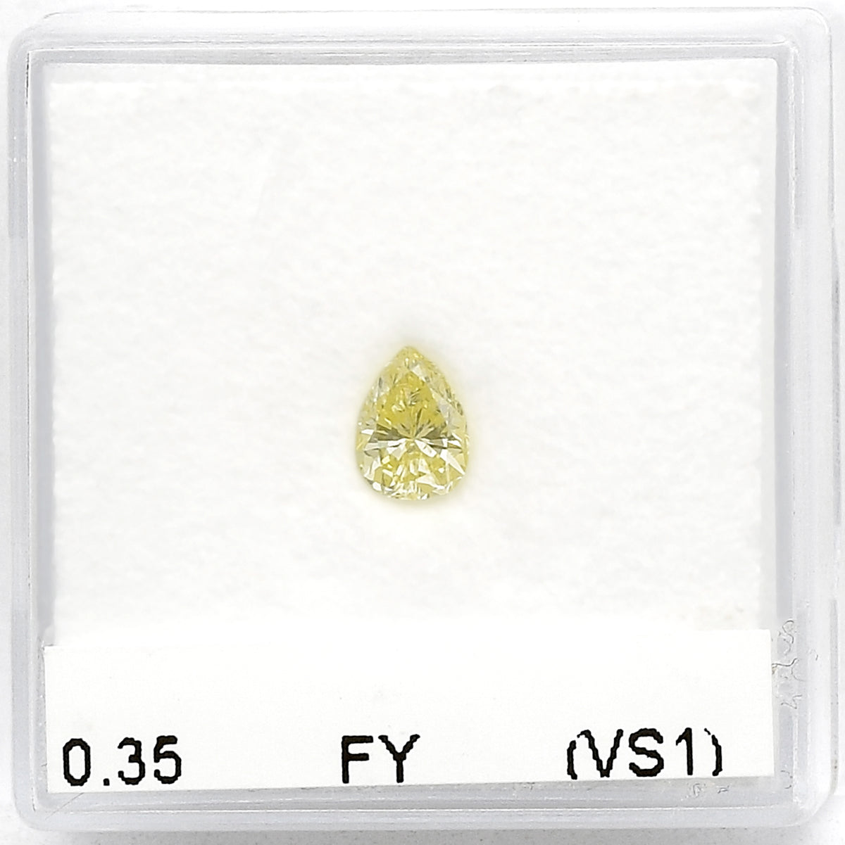 0.35 carat, Fancy Yellow, Pear Diamond with (VS1) clarity, graded by GIA. A beautiful Yellow Diamond, that will look lovely in a piece of jewellery. Clarity graded by our in house GIA GG Graduate Gemologist.