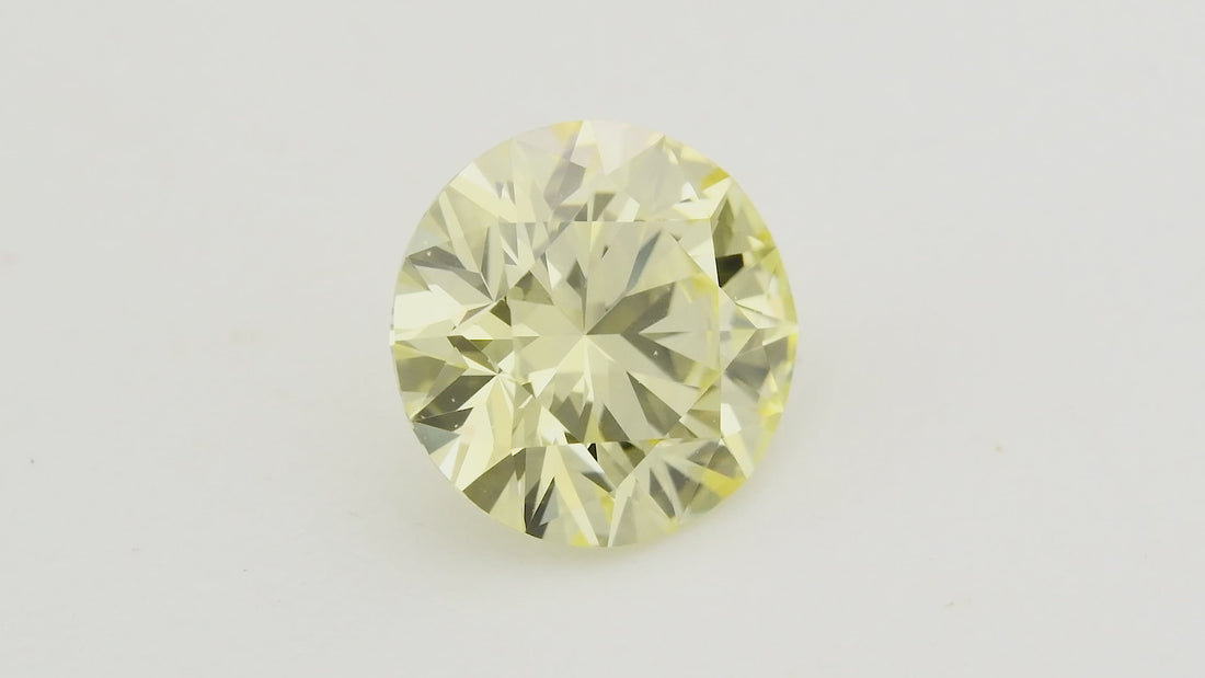 This 0.75 carat fancy yellow round diamond features a perfect IF clarity and GIA certification. Its vibrant yellow hue and brilliant cut deliver exceptional sparkle, making it an elegant choice for custom jewelry designs. This is a Hearts and Arrows Diamond, a meticulously cut round brilliant diamond, known for its "super-ideal" precision, where perfect optical symmetry reveals eight distinct hearts when viewed from the bottom (pavilion) and eight symmetrical arrows when seen from the top (crown).