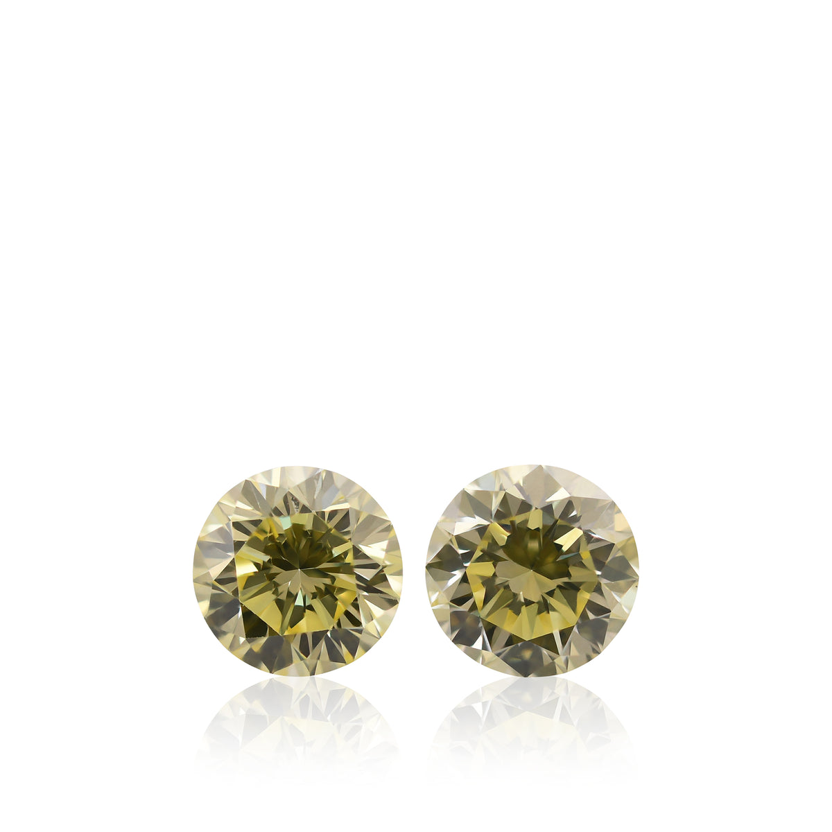 Grundpreis / proA beautiful pair of fancy yellow, round diamonds, total weight 2.14cts, with VS2 clarity, certified by GIA. The stones have a vibrant color face up and can be purchased as a loose pair or set as a pair of earrings in a Leibish setting style or custom design.