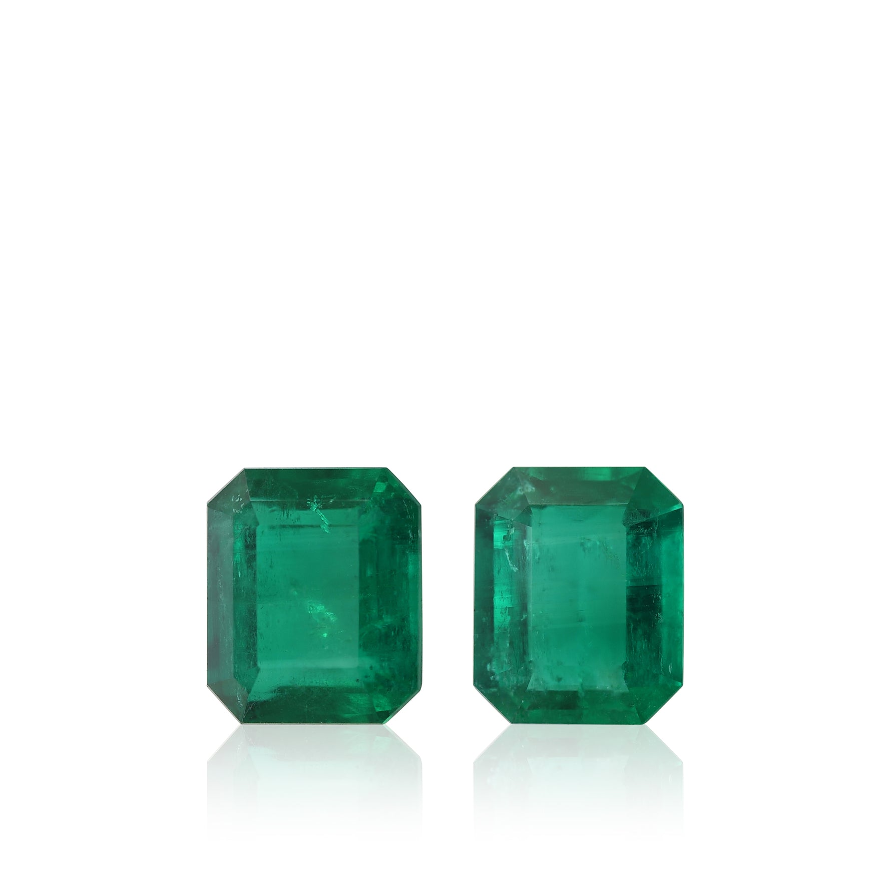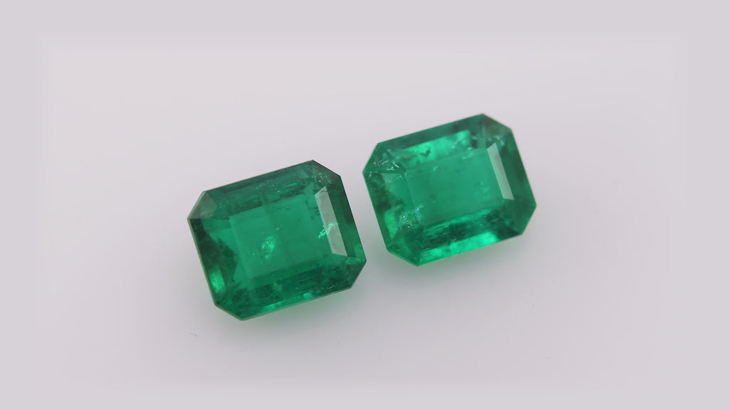 This 5.51-carat pair of Colombian emeralds showcases rich green hues and superior clarity, reflecting the esteemed characteristics of premium Colombian gems, certified by CD.