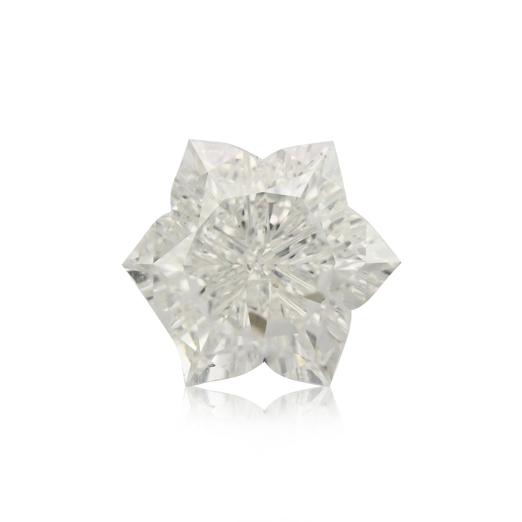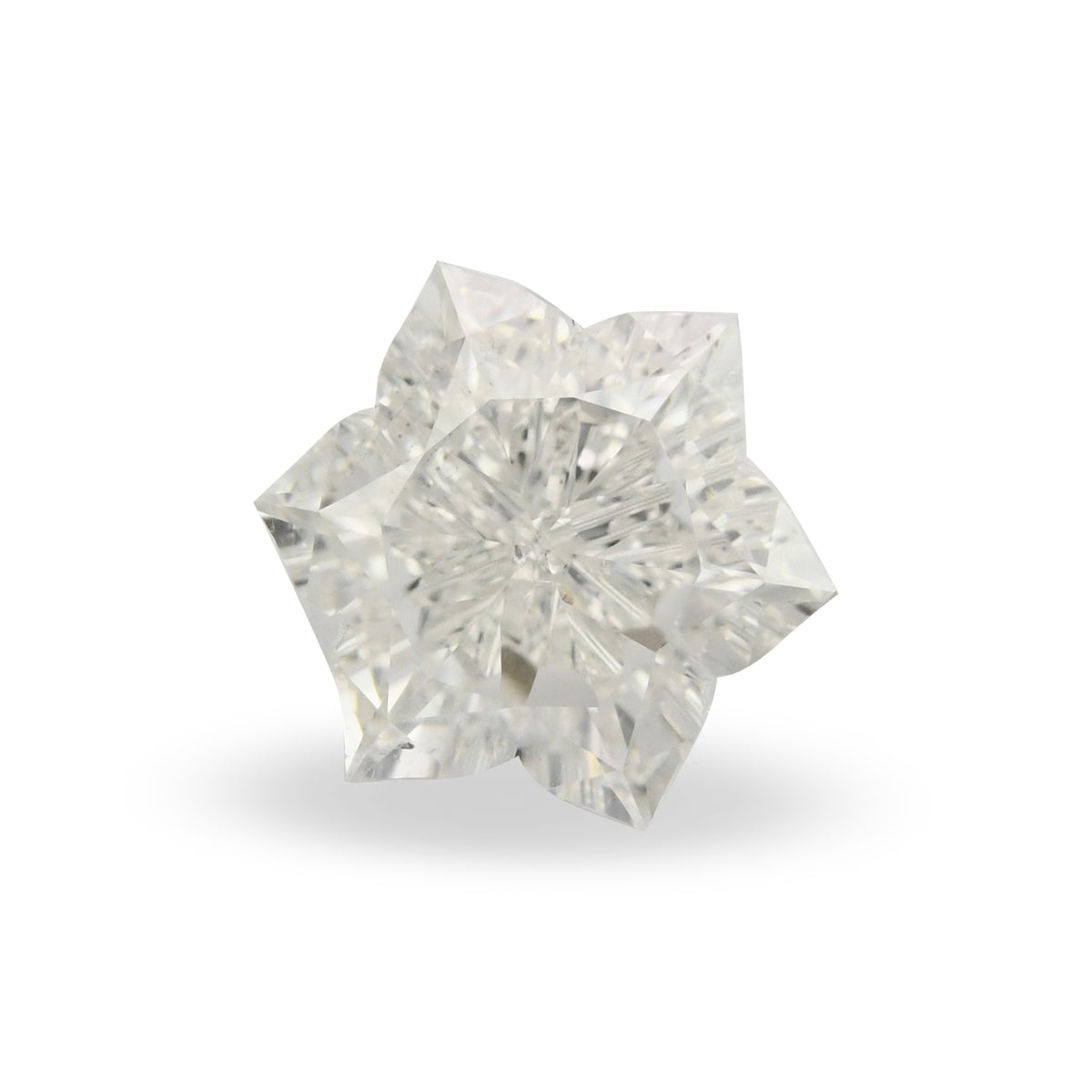 0.89 carat, Colorless, flower shape diamond with SI2 clarity. A splendid H color diamond with a captivating shape. Color and clarity graded by our in house GIA GG Graduate Gemologist.