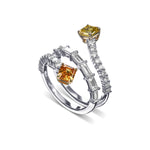 Grundpreis / proA fabulous mix color and mix shape diamond crossover ring, featuring two diamonds with a total weight 1.19cts and both certified by GIA. The stones are enhanced by a spiral band accented with collection color baguettes and brilliants, styled in shared prongs and mounted in 18K white and yellow gold.