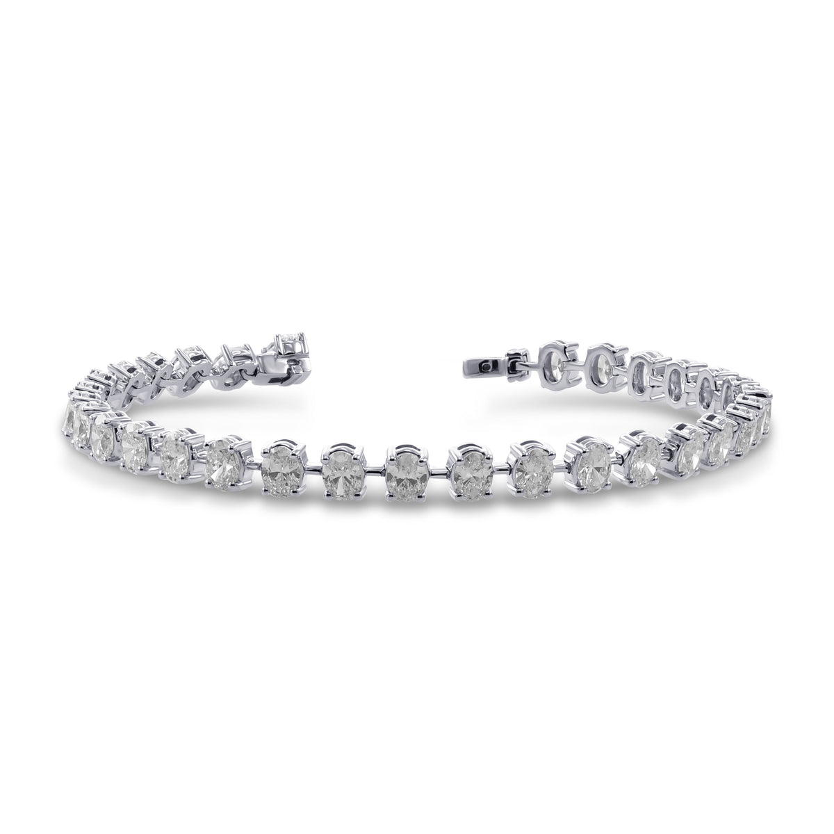 A fabulous oval shape diamond bracelet, featuring 7.68cts collection color oval diamonds, set in 4 prongs and mounted in all platinum.