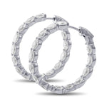 A beautiful pair of H-I color oval diamond hoop earrings, featuring 6.70cts. diamonds with 1.23inch size hoops set in prongs and mounted in 18K white gold.