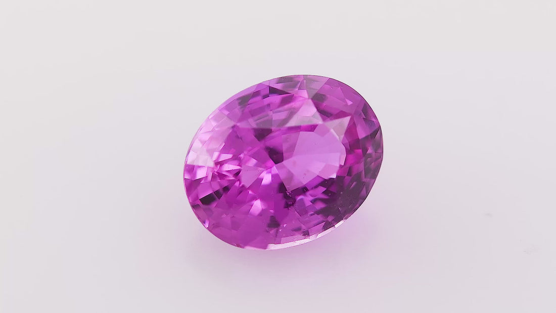 This 2.27 carat oval pink sapphire from Madagascar combines rare color with expert cutting for exceptional brilliance and refined elegance.