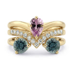 Stückpreis pro"This three-piece stack features a Pink Pear Sapphire approx. 0.50ct for compassion and Teal Round Sapphires approx. 0.80ct tw for stability. United by a V-shaped Diamond band (approx. 0.21ct) for guiding light. Wear stacked or separately a vibrant reminder that life is beautiful in its layers