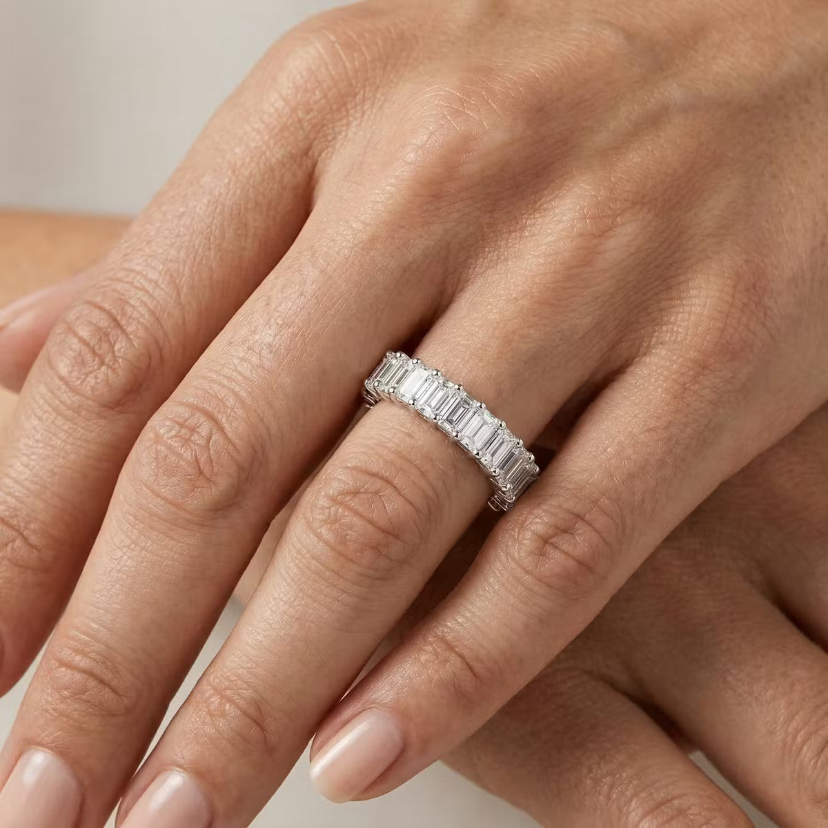 Colorless Emerald Half Diamond Eternity Band