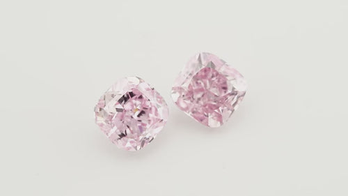 This pair features 1.10 carats of Fancy Intense Purplish Pink cushion-cut diamonds, graded VS2 for clarity by GIA. Their rare, vibrant hue and excellent clarity make them a remarkable choice for collectors and connoisseurs seeking exceptional color and precision-cut brilliance. Ideal for custom jewelry designs.
