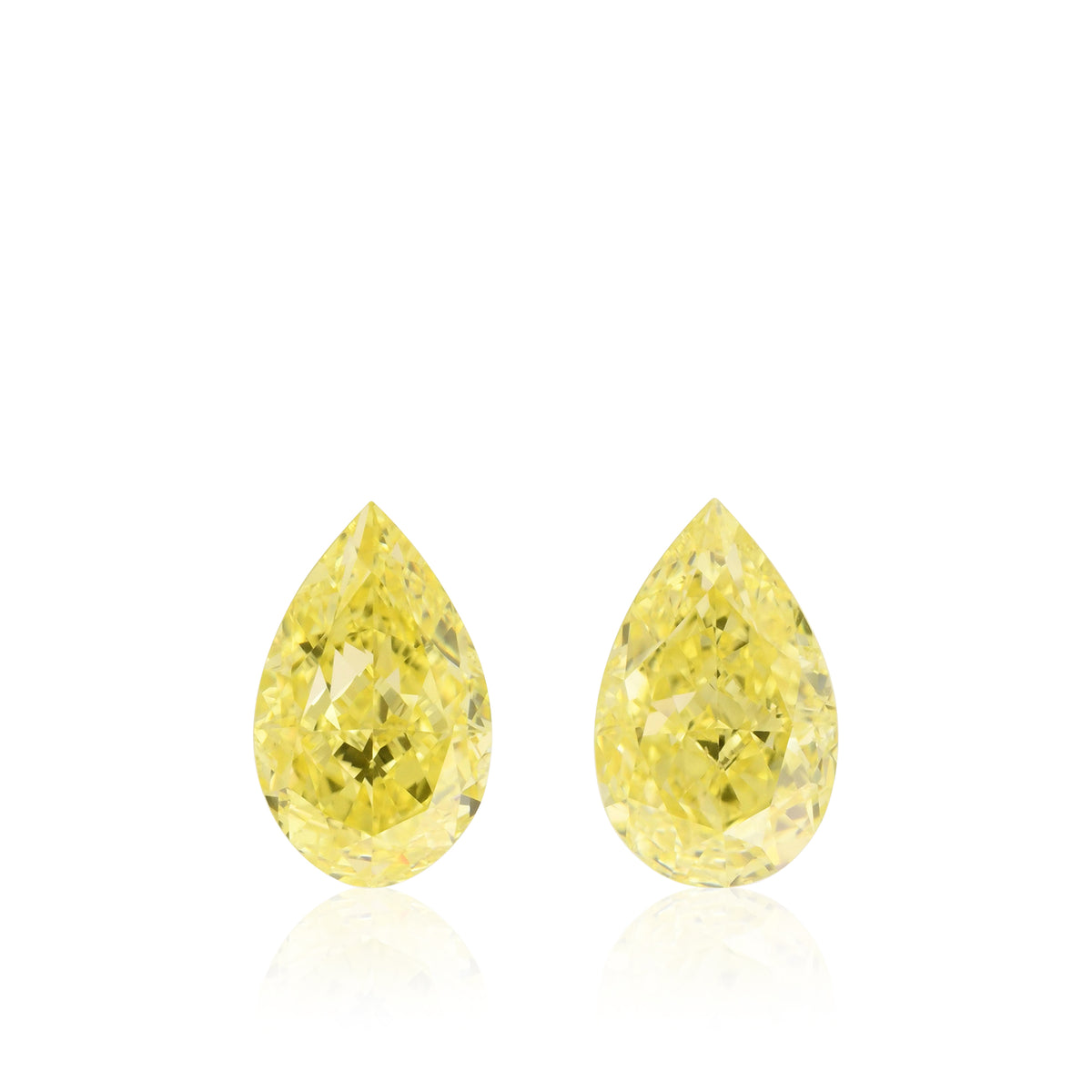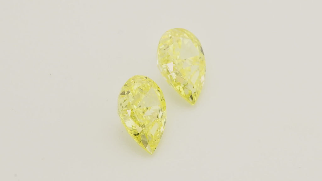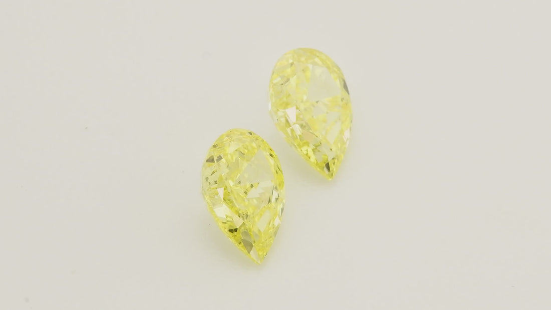 1.09 Carat Fancy Intense Yellow Pear Diamonds VS2 And VS2 GIA Pair