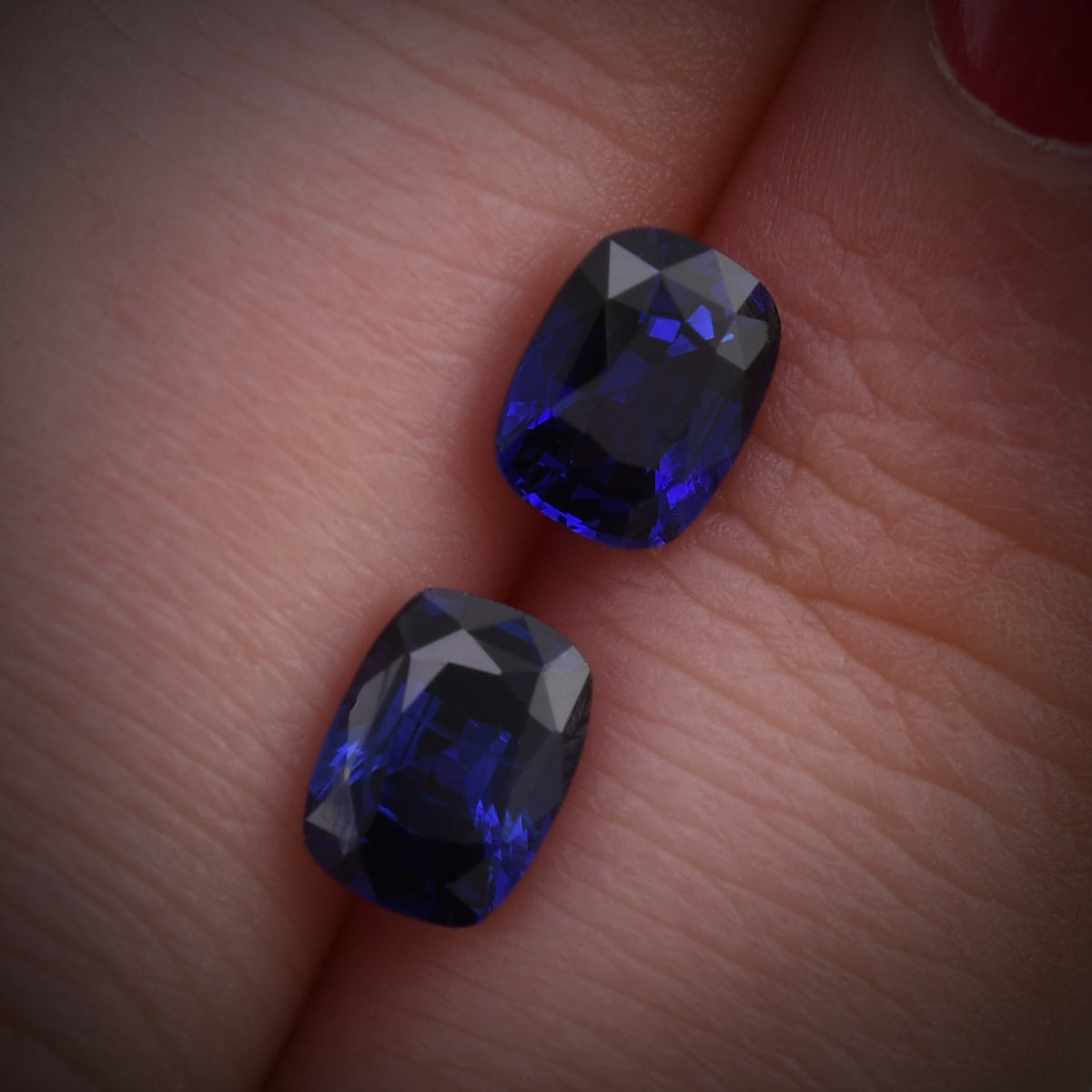An impressive pair of , cushion shape Sapphire gemstones, total weight 2.22cts. The stones have a lovely luster and can be purchased as a loose pair or set as a pair of earrings in a Leibish setting style or custom design.