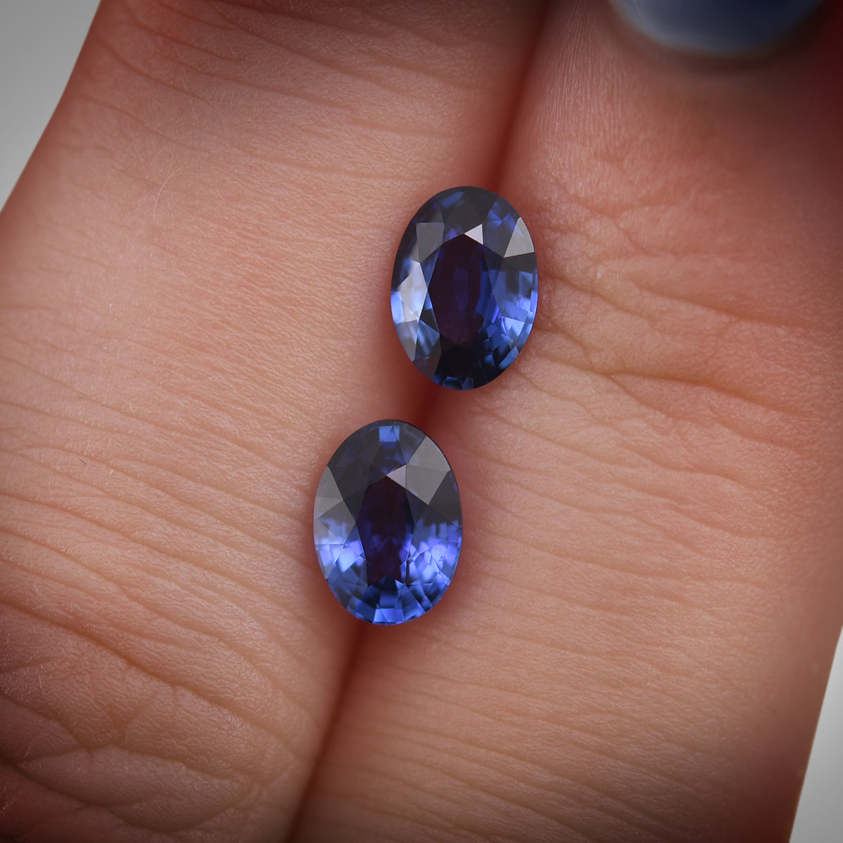 1.75 Carat Blue SRI LANKAN Oval Sapphires Pair