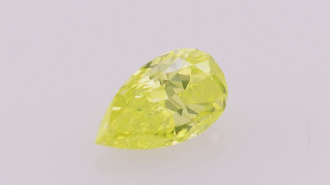 This 0.19 carat pear-shaped diamond dazzles with a rare Fancy Intense Green Yellow hue, offering a unique and vibrant sparkle. Graded SI1 for clarity by GIA and verified by our in-house GIA Graduate Gemologist, it combines exceptional quality with a striking citrus color.