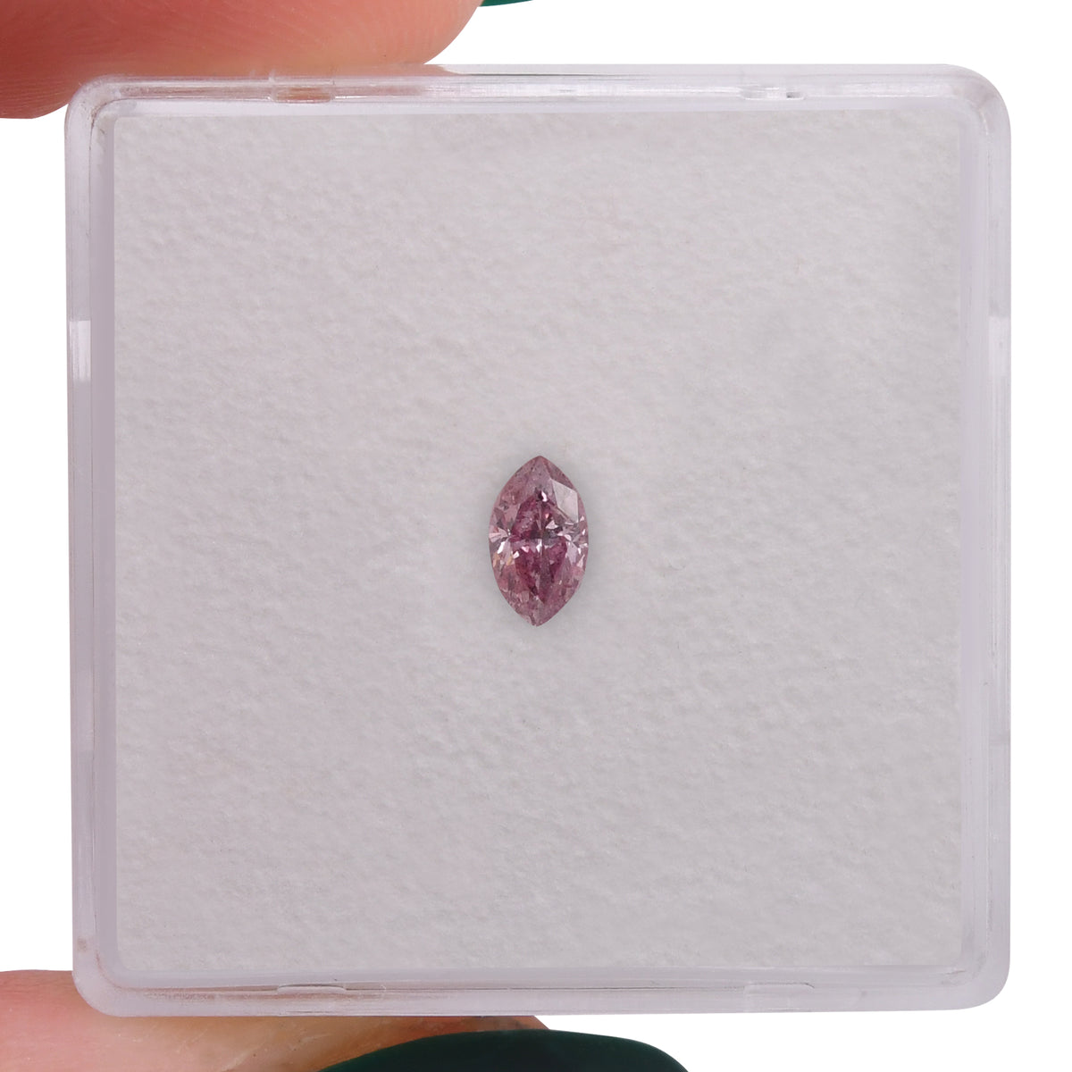 0.21 carat, Fancy Intense Purple Pink, Marquise shape Diamond with I2 clarity, graded by GIA. A wonderful Pink Diamond with a remarkable color tone.