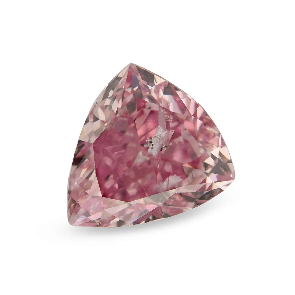 This remarkable 0.42-carat triangle diamond showcases a vivid Fancy Intense purplish pink coloration. Graded I1 for clarity, it delivers striking visual presence with exceptional value proposition. Perfect for bespoke jewelry creations seeking distinctive character. Our in-house GIA Graduate Gemologist has carefully assessed this stone's quality.
