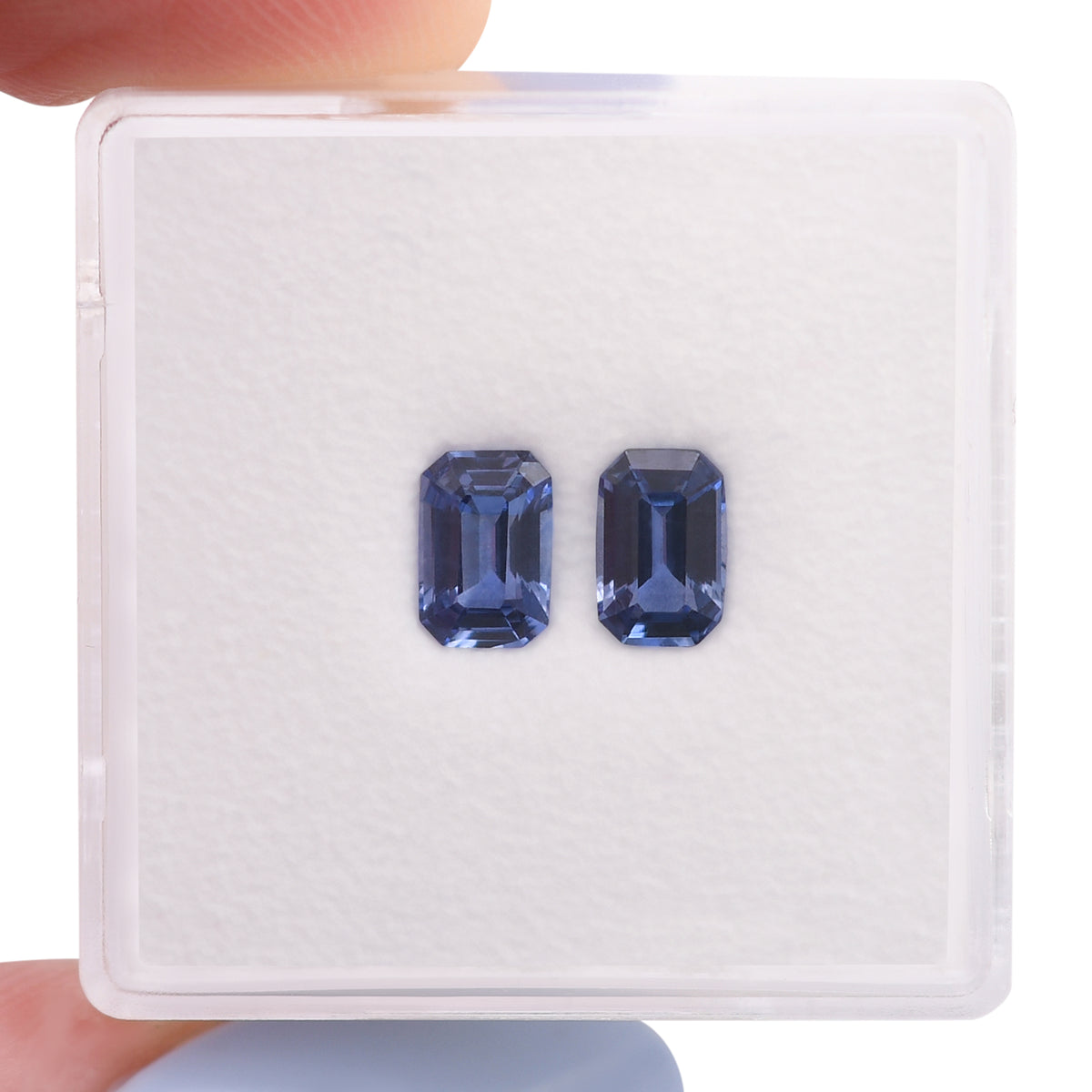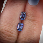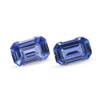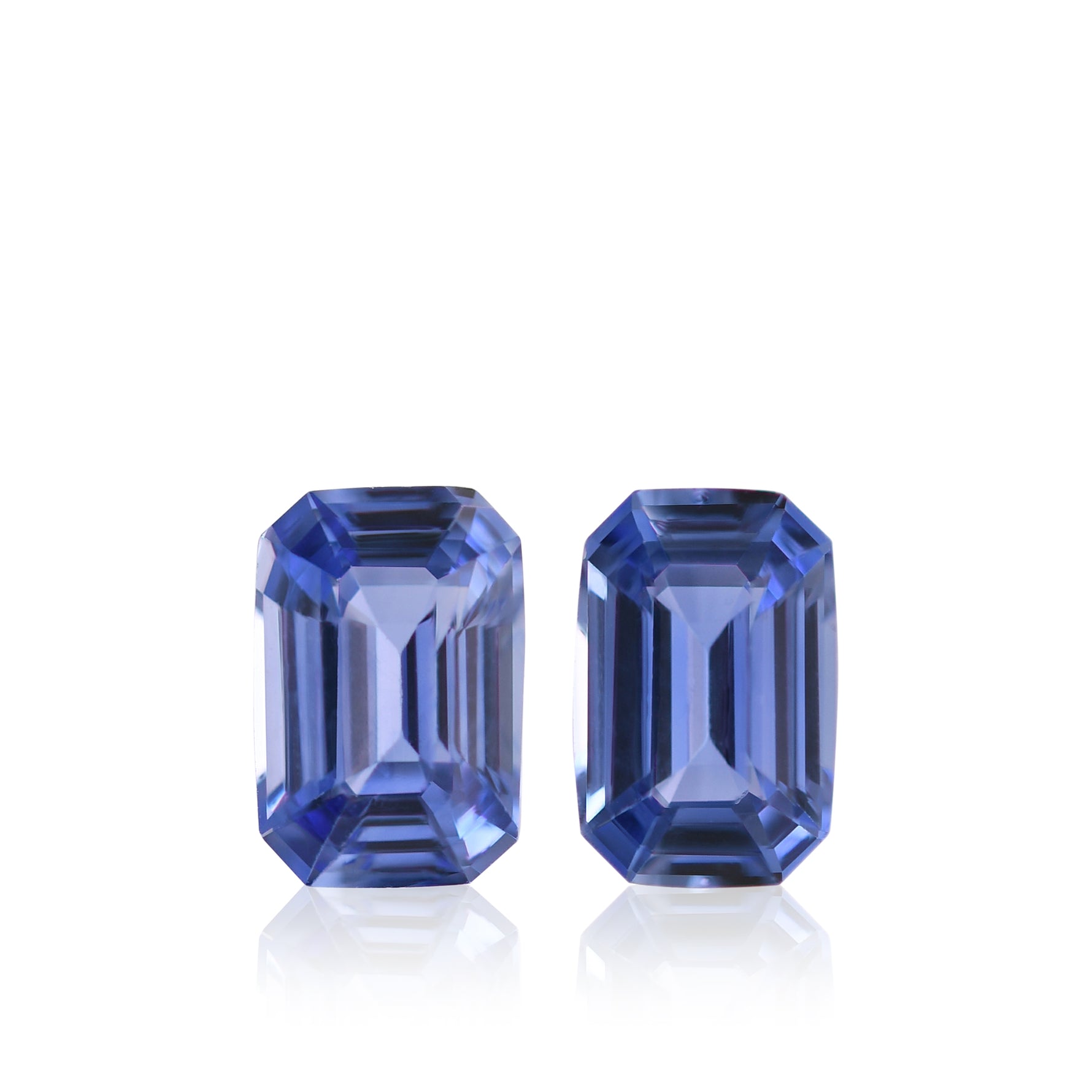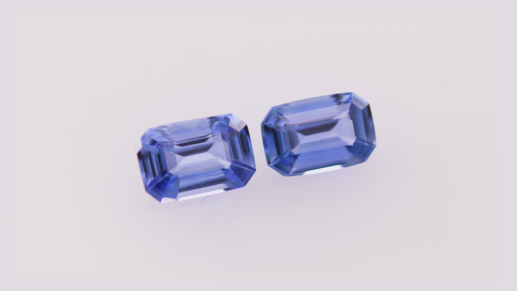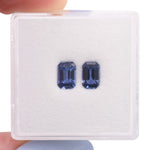 A matched pair of blue sapphires from Sri Lanka, totaling 1.25 carats in emerald cut. These stones display the rich, saturated blue color that defines premium Sri Lankan sapphires, with excellent clarity and brilliance.