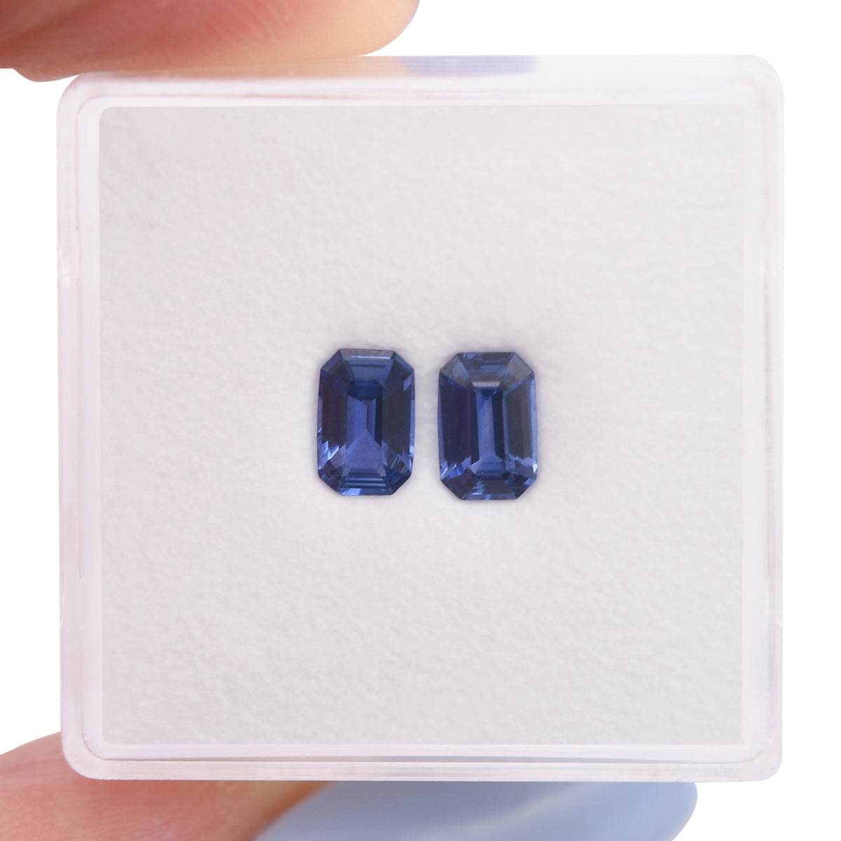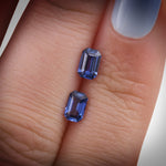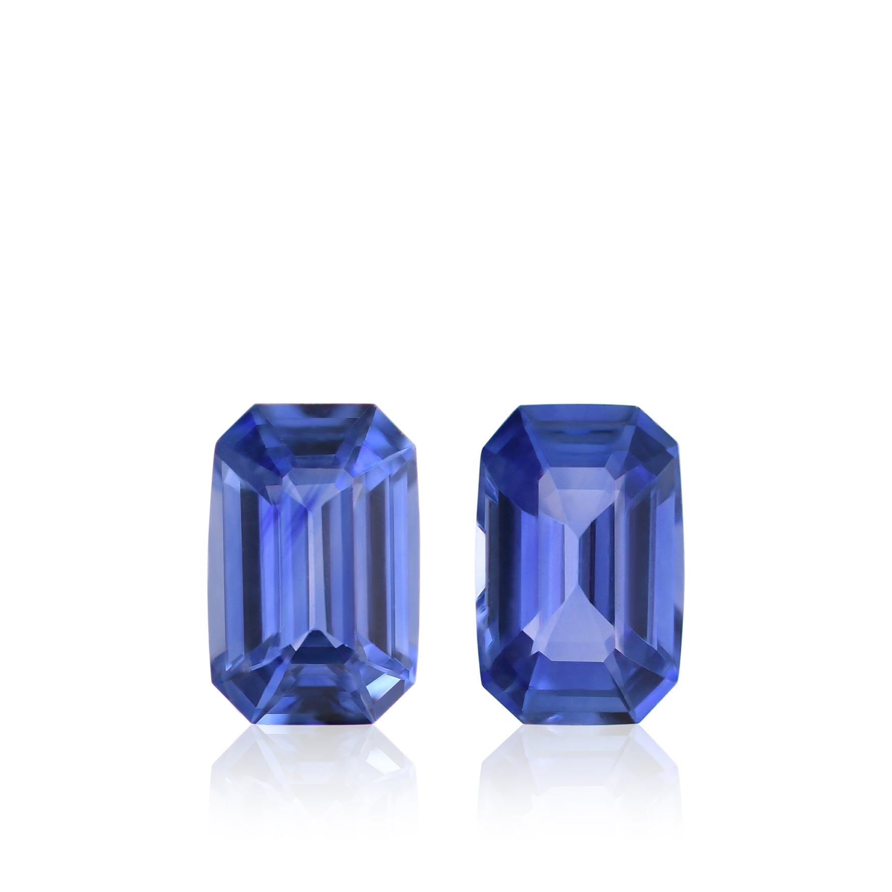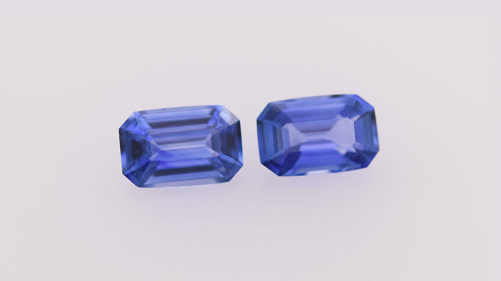 A matched pair of premium blue sapphires from Sri Lanka, totaling 1.09 carats. These emerald-cut stones display the rich, saturated blue hues and exceptional clarity that define fine Sri Lankan sapphires. Ideal for custom jewelry designs and discerning collectors.