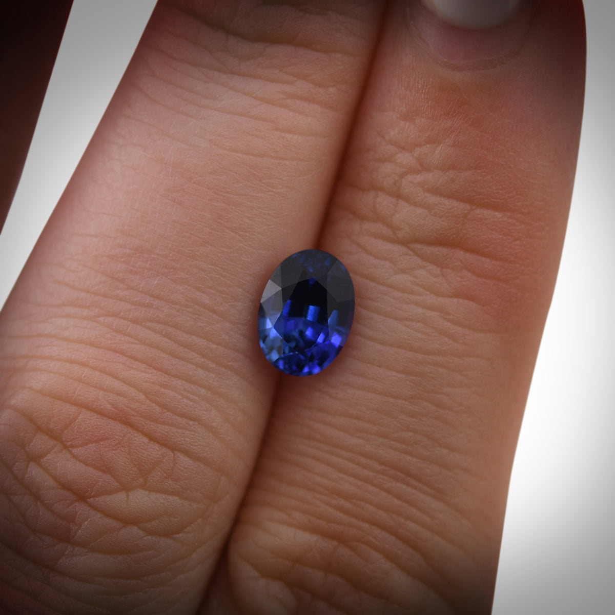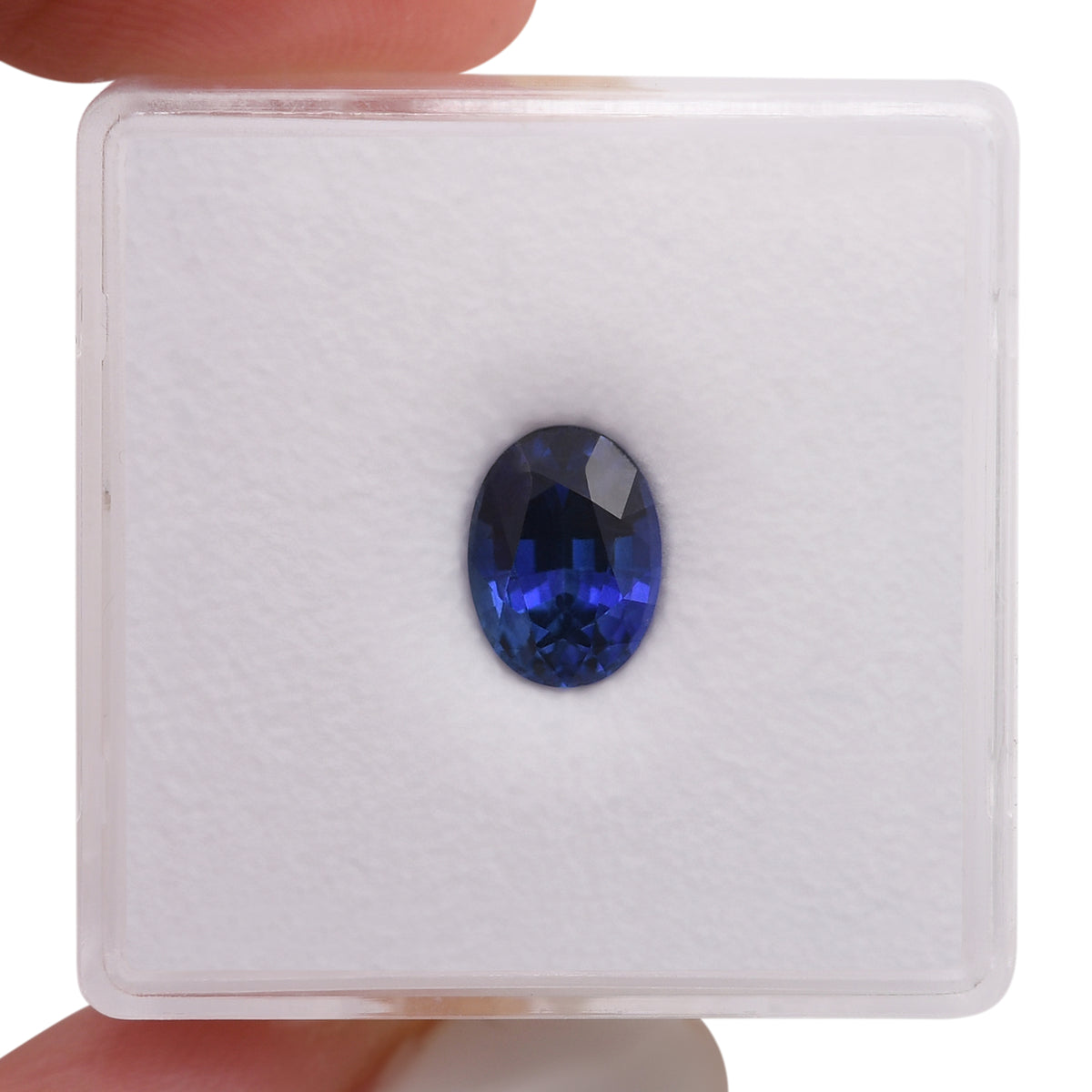A stunning 1.62-carat blue sapphire from Sri Lanka, expertly cut in an oval shape to enhance its rich, saturated color. This premium gemstone exemplifies the superior quality and timeless beauty that Sri Lankan sapphires are renowned for among collectors and connoisseurs.