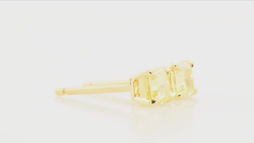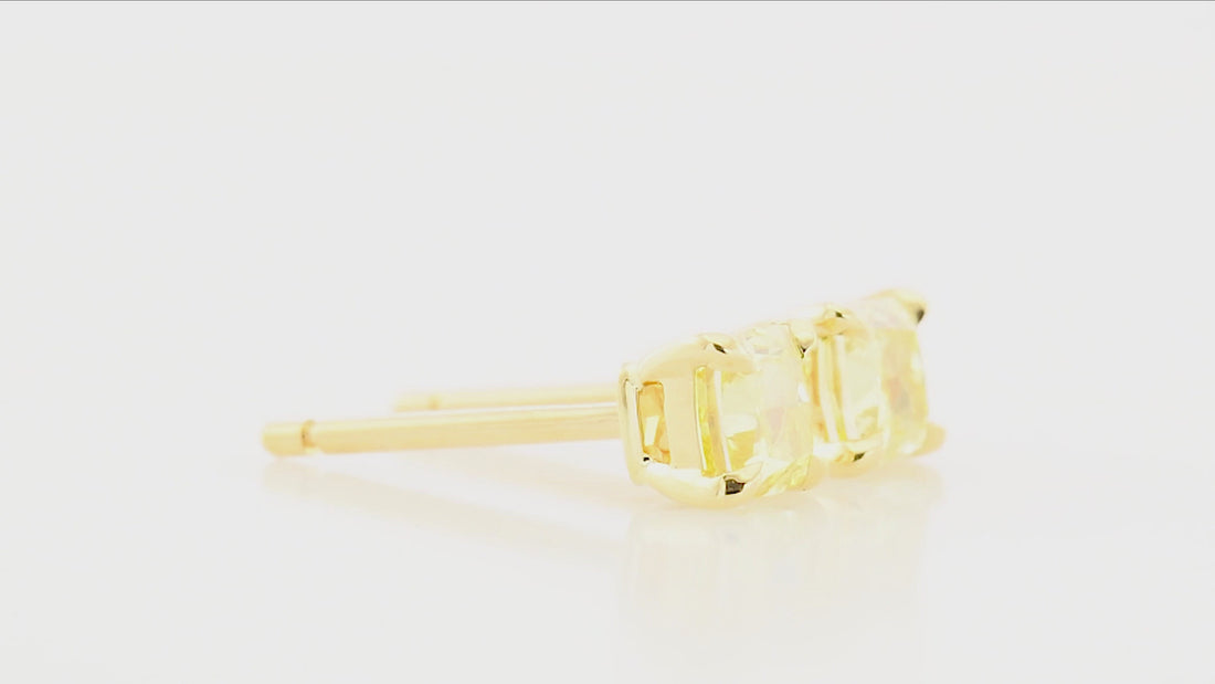 These elegant cushion-cut fancy intense yellow diamond stud earrings showcase a total of 1.00 carat of GIA-certified diamonds. Set in 18K yellow gold with secure four-prong settings, they combine timeless design with exceptional quality.