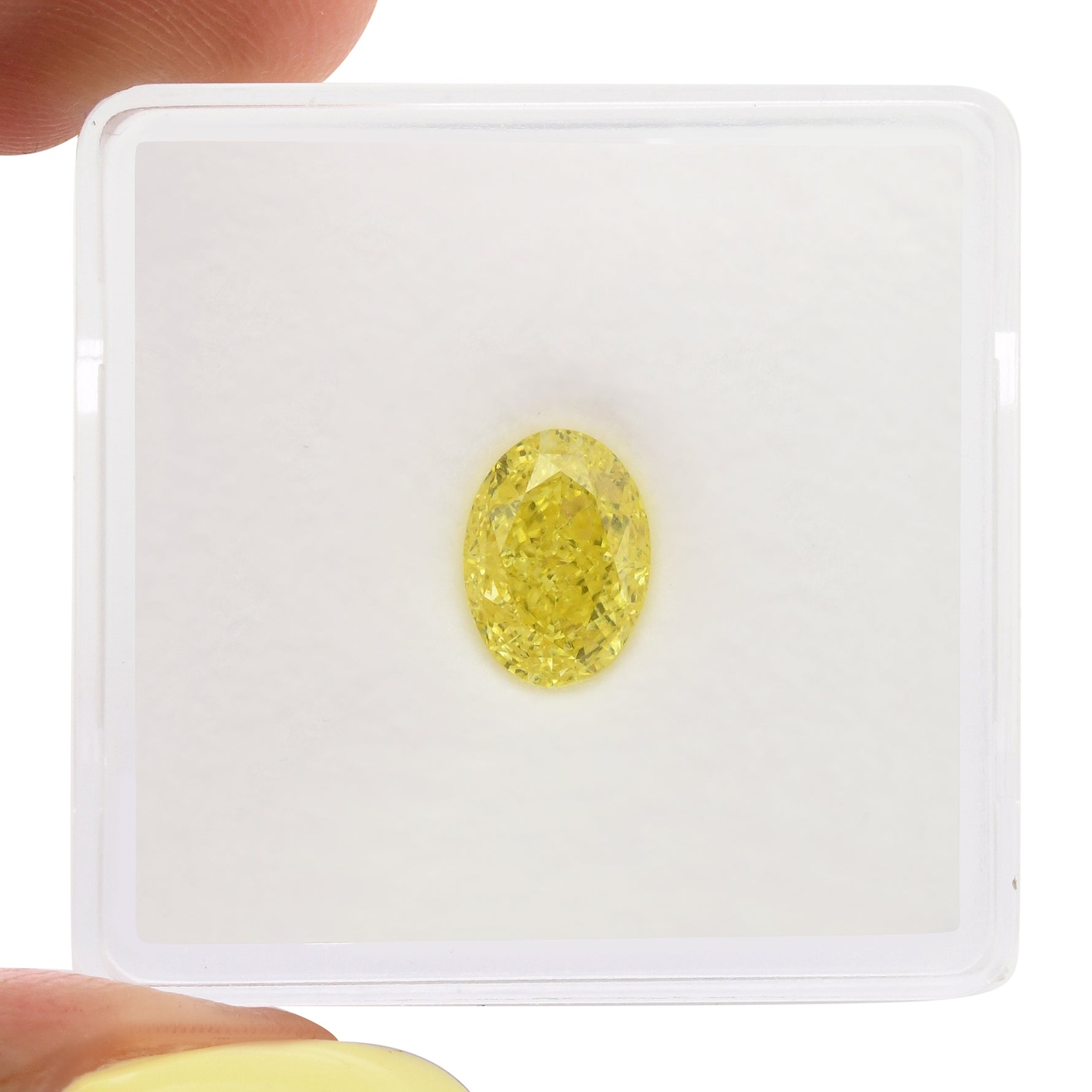 This 1.36 carat Fancy Intense Yellow oval diamond features exceptional VS1 clarity certified by GIA, offering vivid color and refined elegance in a captivating oval cut.
