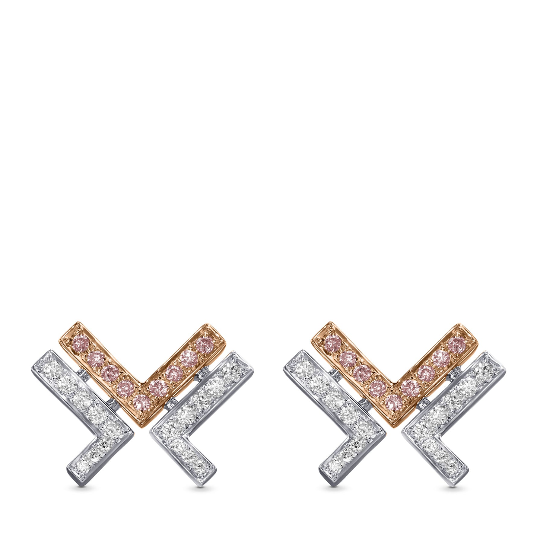 Fancy Pink and White Diamond Leibish Logo Pave Earrings