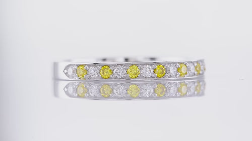 Fancy Vivid Yellow and White Diamond Band Ring