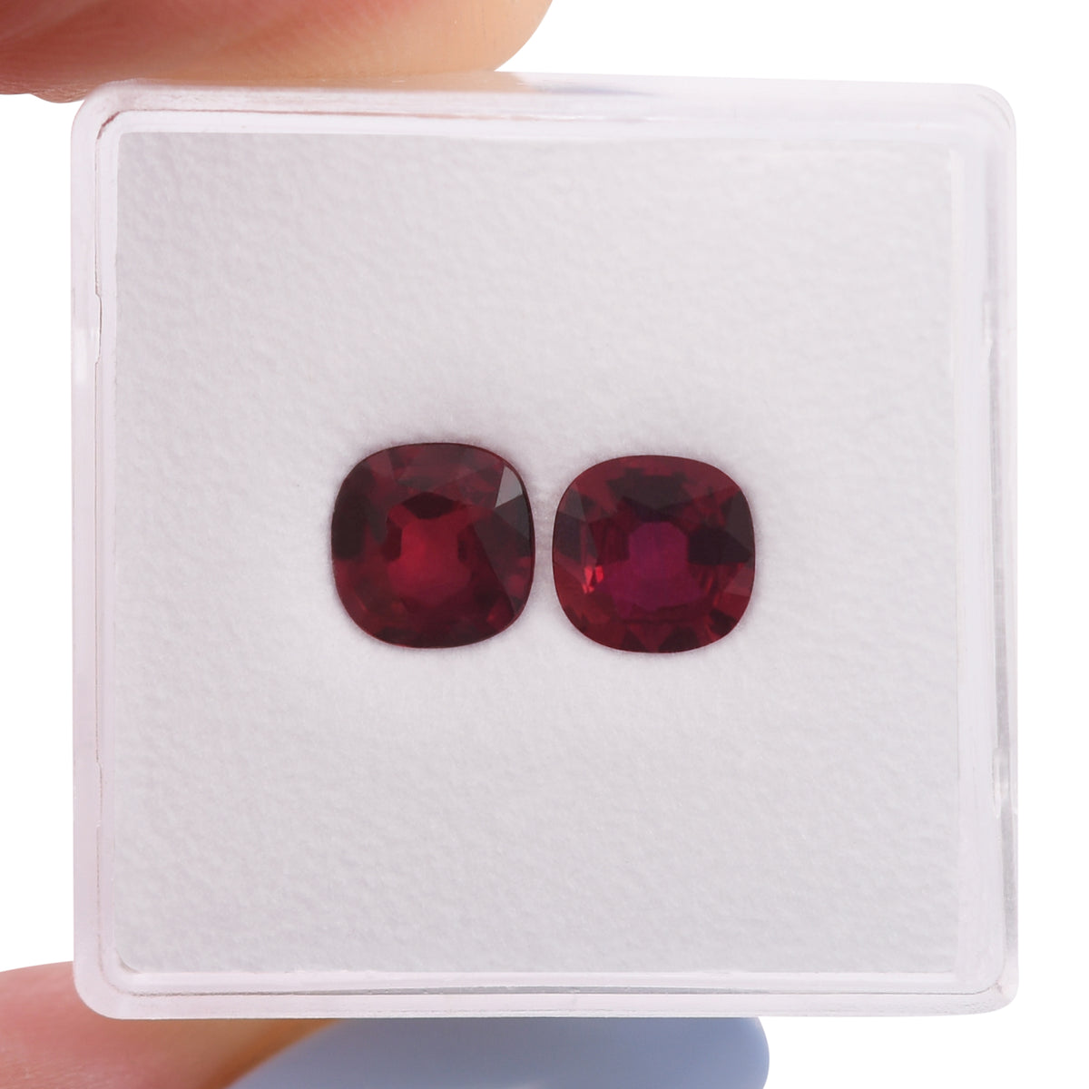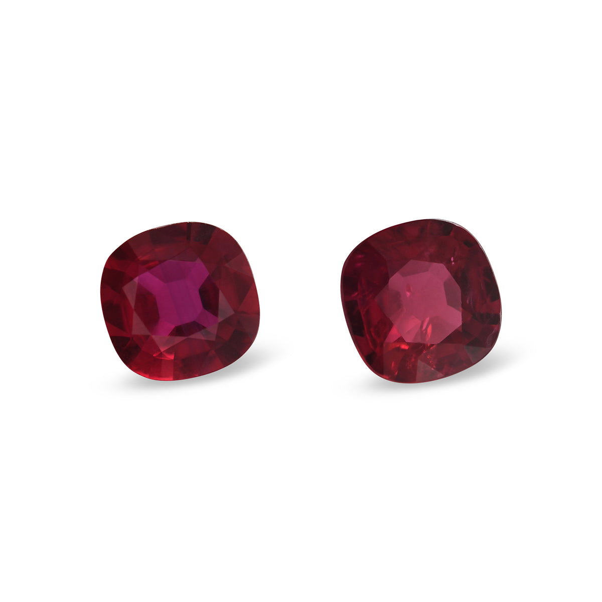 Unit price / perThis pair of 1.86 carat Mozambique cushion rubies features a deep red color and excellent clarity, ideal for refined jewelry pieces demanding exceptional quality.