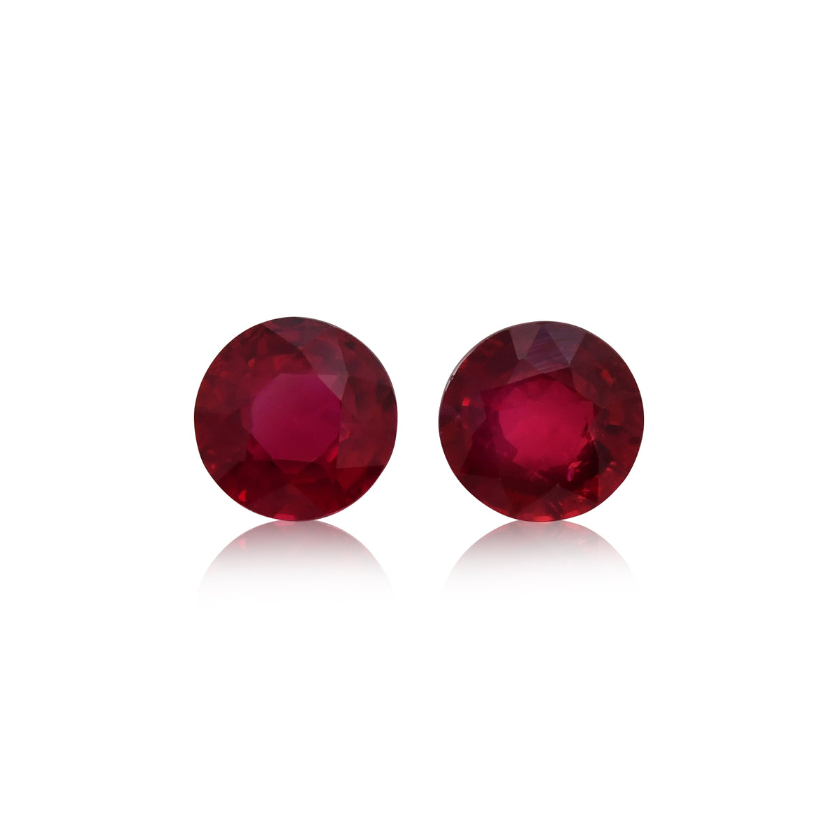 A magnificent pair of red, round shape Ruby gemstones, total weight 2.39cts. The stones have lots of life and can be purchased as a loose pair or set as a pair of earrings in a Leibish setting style or custom design.