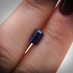 A beautiful 1.29-carat blue sapphire from Sri Lanka, cut in an emerald style. This gemstone displays the rich, deep blue color that Sri Lankan sapphires are known for. Perfect for creating a distinctive piece of fine jewelry.