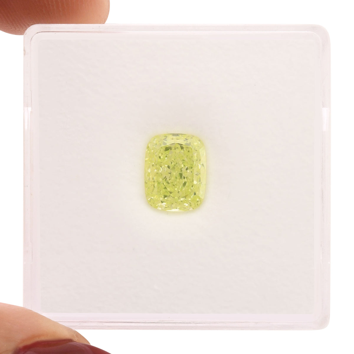 1.49 Carat Fancy Intense Yellow Green Cushion Diamond VVS1 GIA