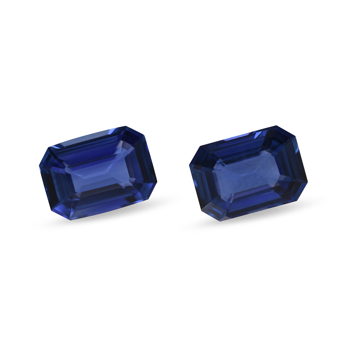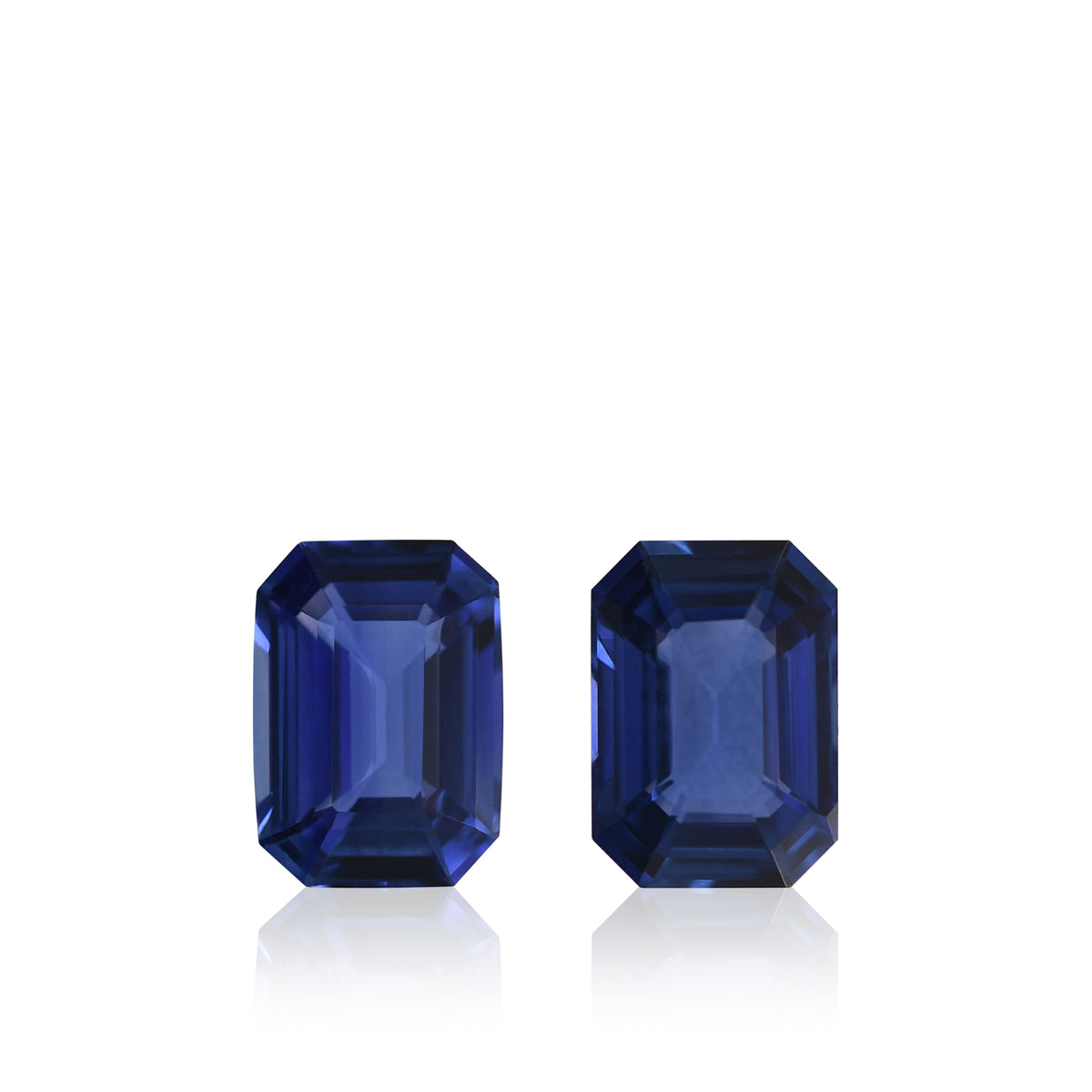 This exquisite pair of blue Sri Lankan sapphires weighs 2.08 carats total, featuring the deep, captivating blue tones these gemstones are celebrated for. Cut in an elegant emerald shape, both stones offer exceptional clarity and vivid color. Ideal for creating matching earrings or custom jewelry pieces.