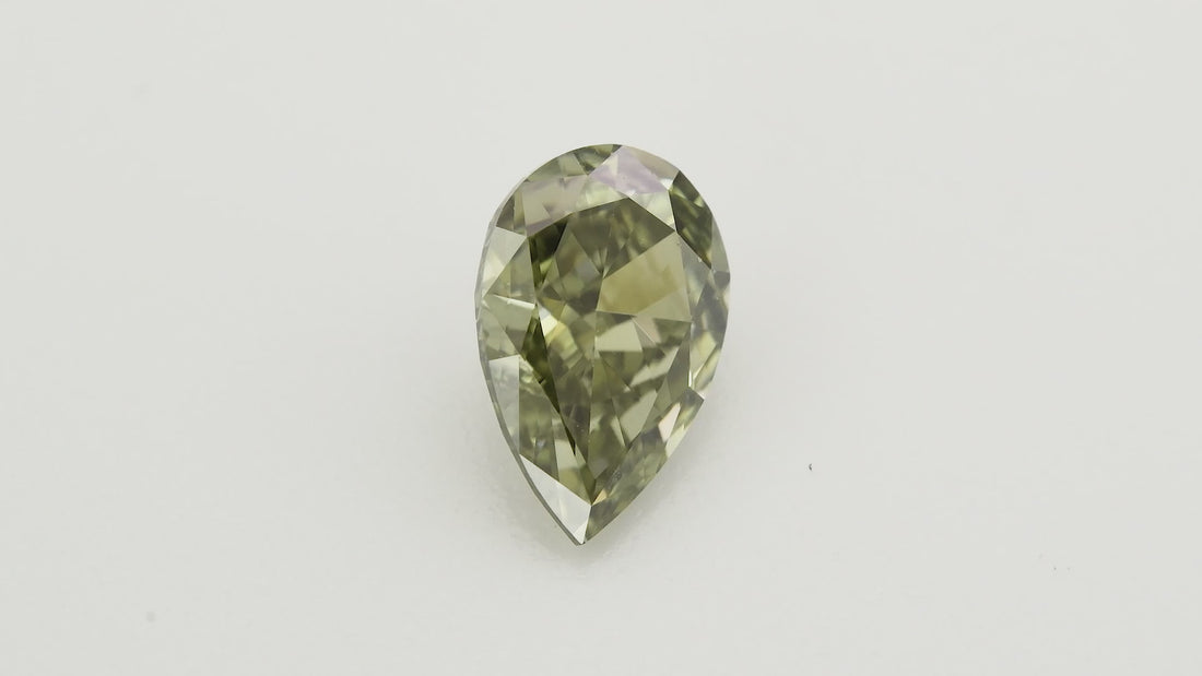 This exceptional 0.54-carat pear-shaped diamond showcases the rare chameleon phenomenon—a distinctive optical property where the stone temporarily shifts its hue when exposed to heat or darkness. Graded Fancy Dark Gray Yellowish Green with VS1 clarity, this gemstone combines visual intrigue with excellent structural integrity. The pear cut maximizes the stone's unique color characteristics while offering elegant proportions ideal for distinctive jewelry designs.
