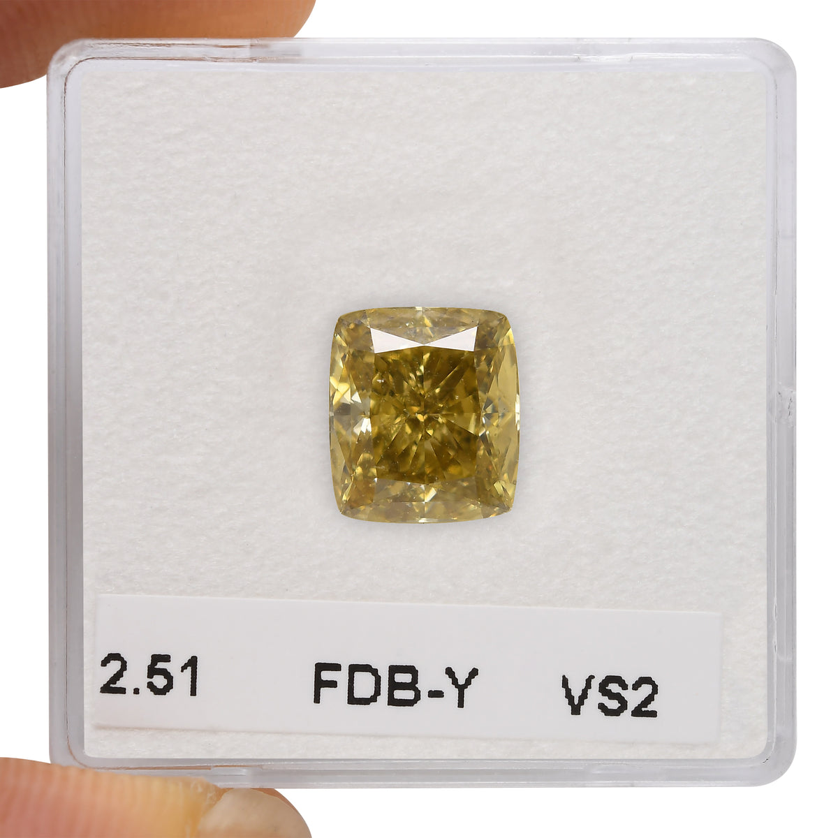2.51 Carat Fancy Deep Brownish Yellow Cushion Diamond VS2 GIA