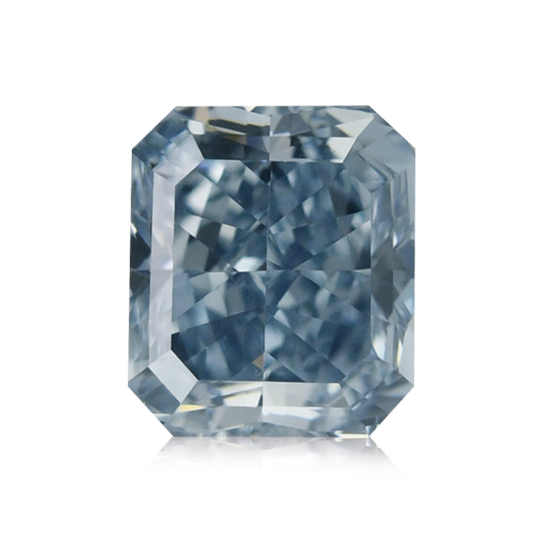 0.38 carat, Fancy Intense Blue, radiant diamond with VS1 clarity. A beautiful blue diamond with a dominant sky blue color tone. The stone has Good polish and Good symmetry.