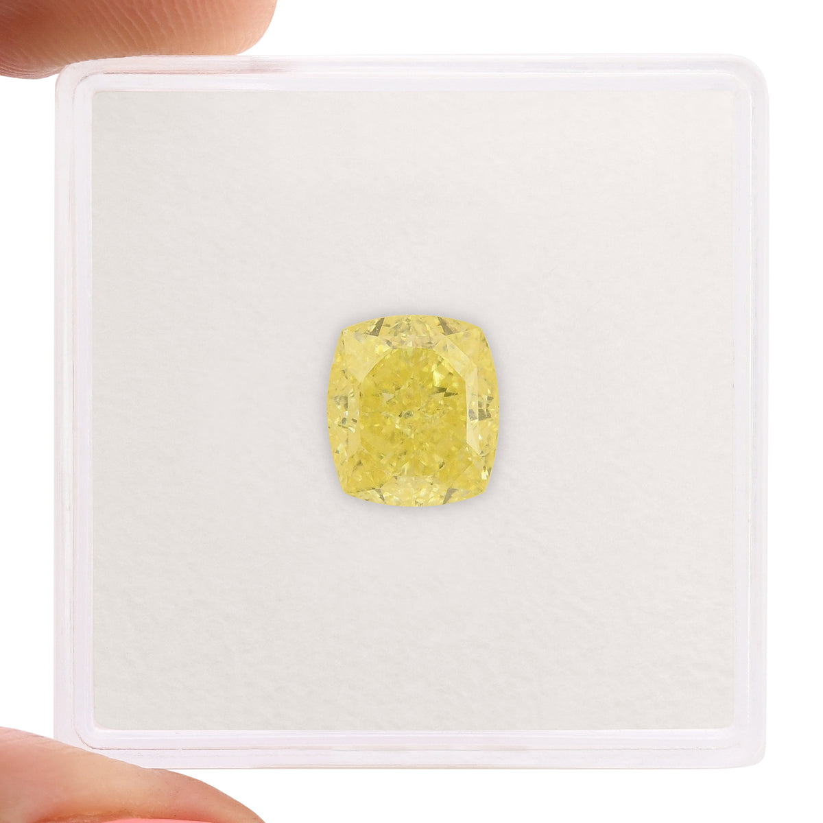 2.27 Carat Fancy Intense Yellow Cushion Diamond VVS2 GIA