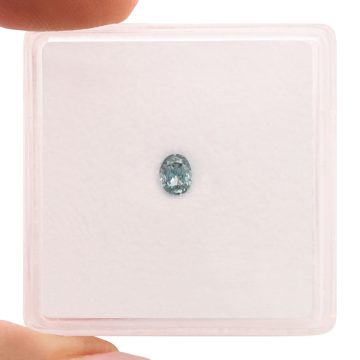 A remarkable 0.18-carat oval diamond featuring an intense green-blue hue, certified VS1 by GIA. This rare colored diamond combines exceptional clarity with a distinctive aqua tone, perfect for creating a truly unique piece of fine jewelry.