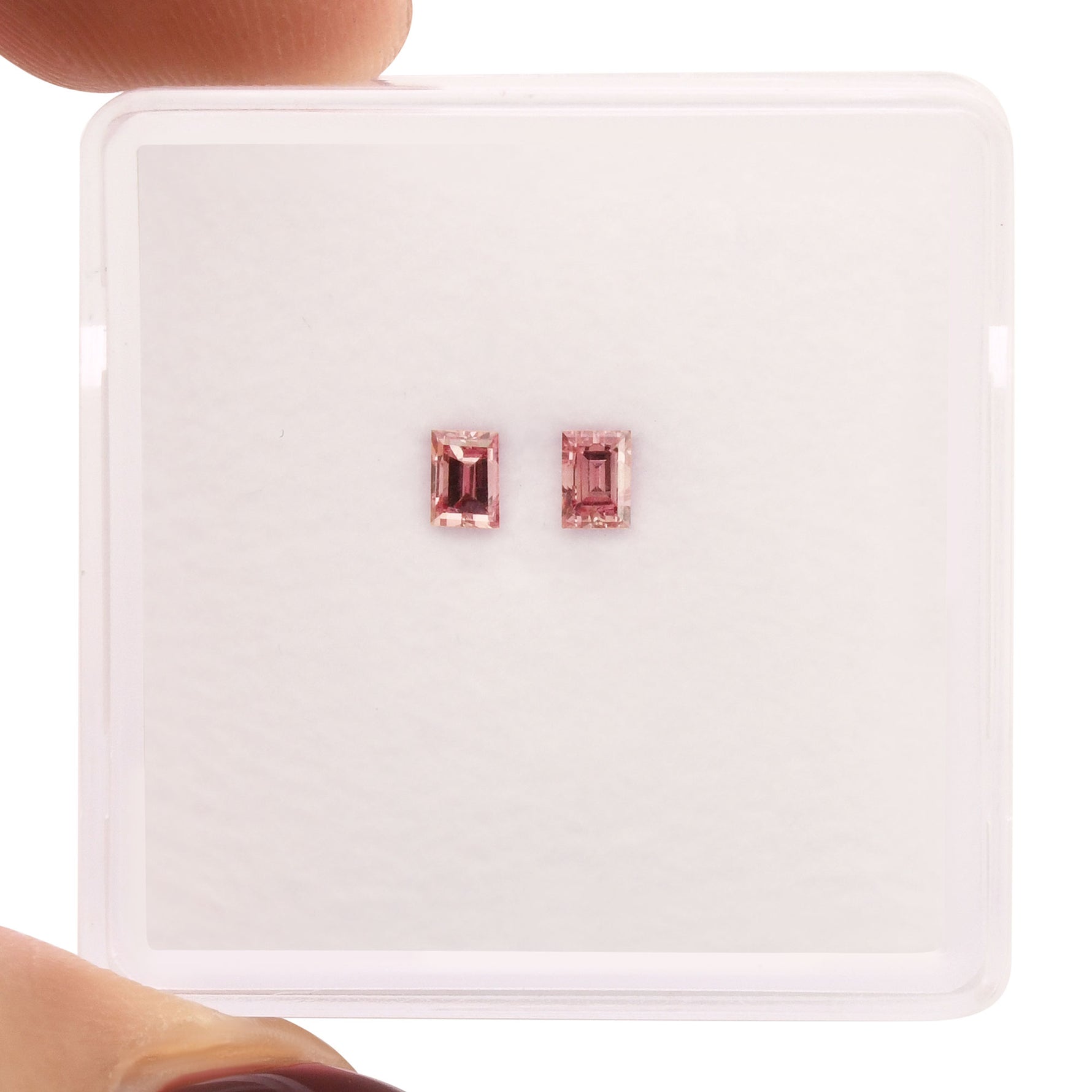 Elevate your collection with this exceptional pair of pink diamonds. Two perfectly matched stones, each 0.25 carat, radiate a stunning Fancy Intense pink hue in elegant baguette cuts. SI1 clarity and GIA certification guarantee authenticity and superior quality. A rare investment piece for those who appreciate refined luxury and distinctive beauty. Clarity graded by our in house GIA GG Graduate.