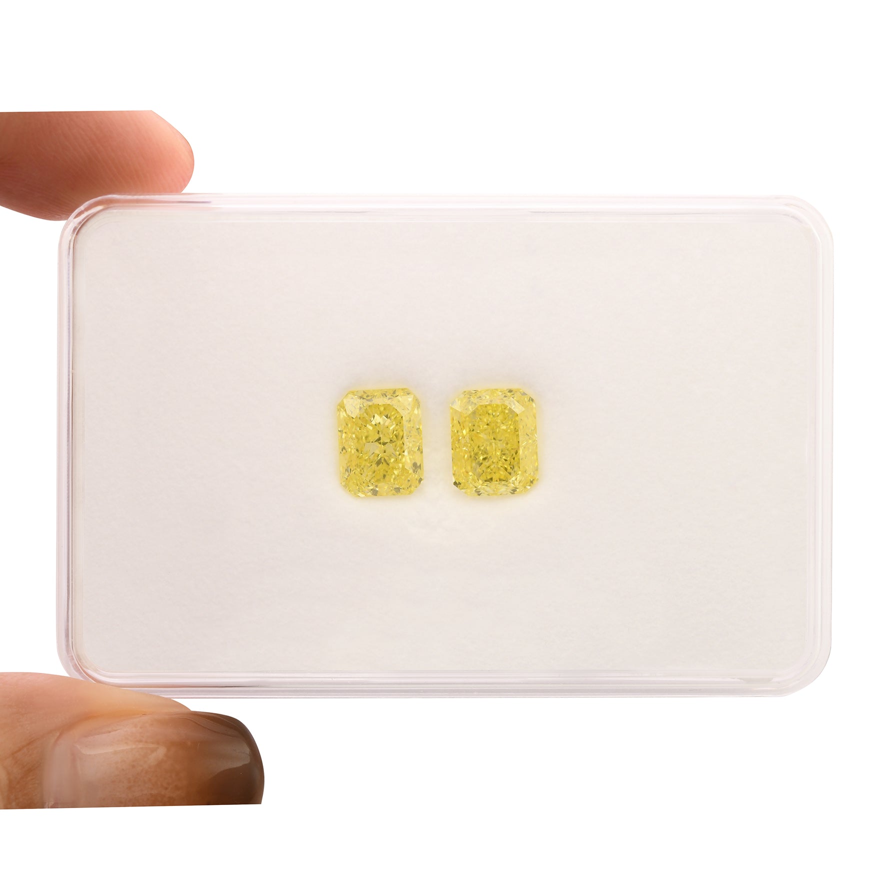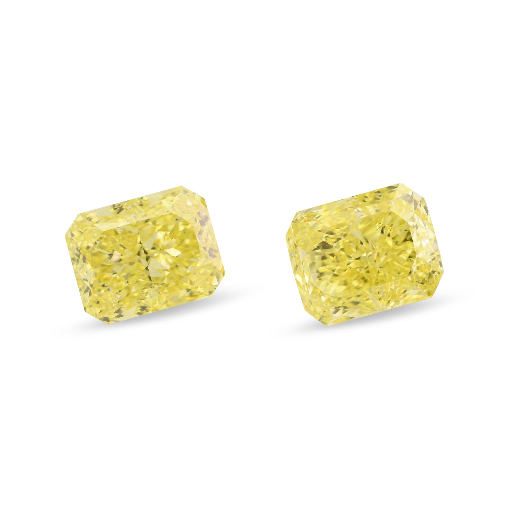 Discover the radiant brilliance of this exceptional yellow diamond pair, each stone certified by GIA with VS2 and FL clarity. These fancy intense yellow radiant cuts showcase remarkable color saturation and sparkle, making them ideal for creating a truly distinctive piece of fine jewelry. With a combined weight of 4.12 carats, this matched pair offers versatility for custom designs while maintaining the sophisticated allure of natural fancy colored diamonds. Perfect for the discerning collector seeking authentic beauty and investment-grade quality.