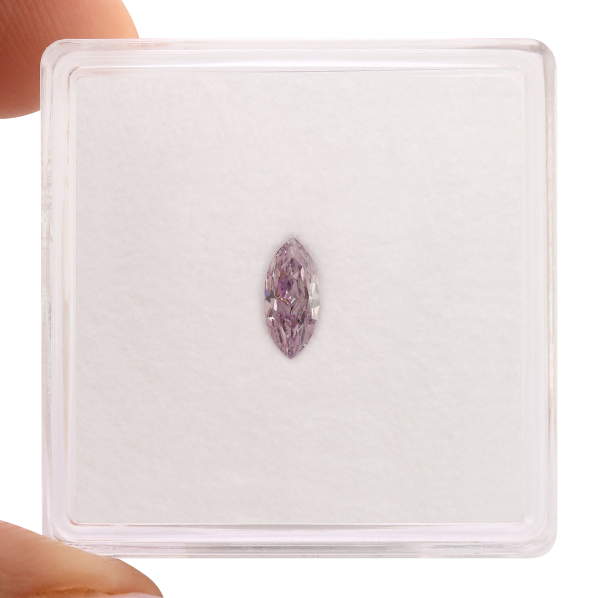 A striking 0.25 carat marquise diamond showcasing a rare Fancy Intense pinkish purple hue. Certified by GIA with VS2 clarity, this stone delivers excellent light performance and minimal inclusions. The elegant marquise cut maximizes color saturation while offering distinctive visual appeal.