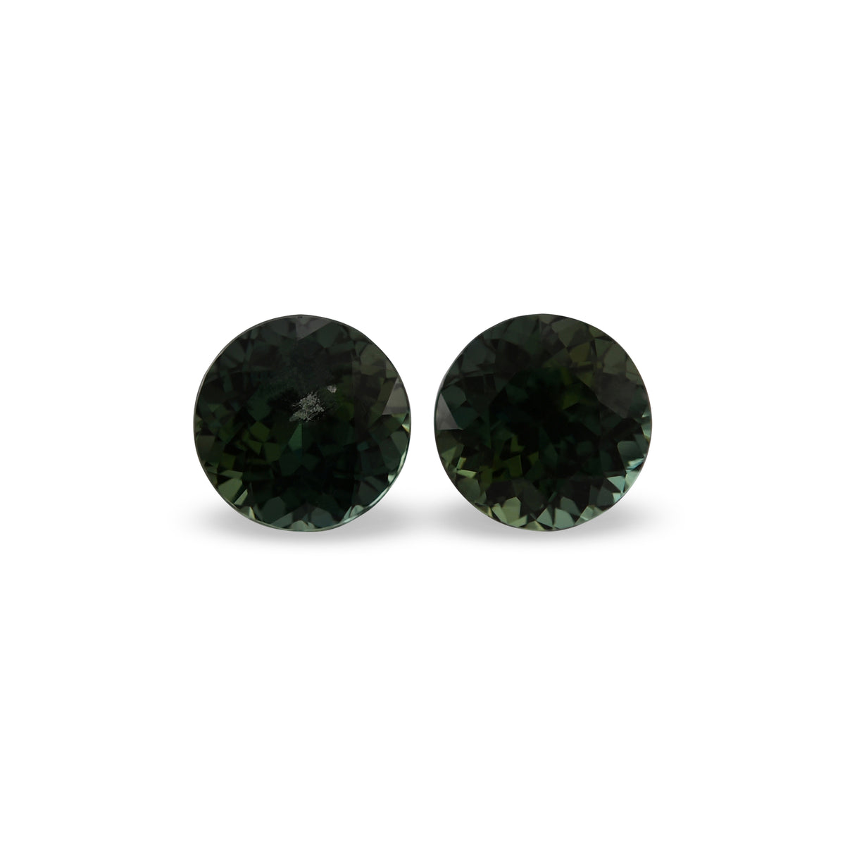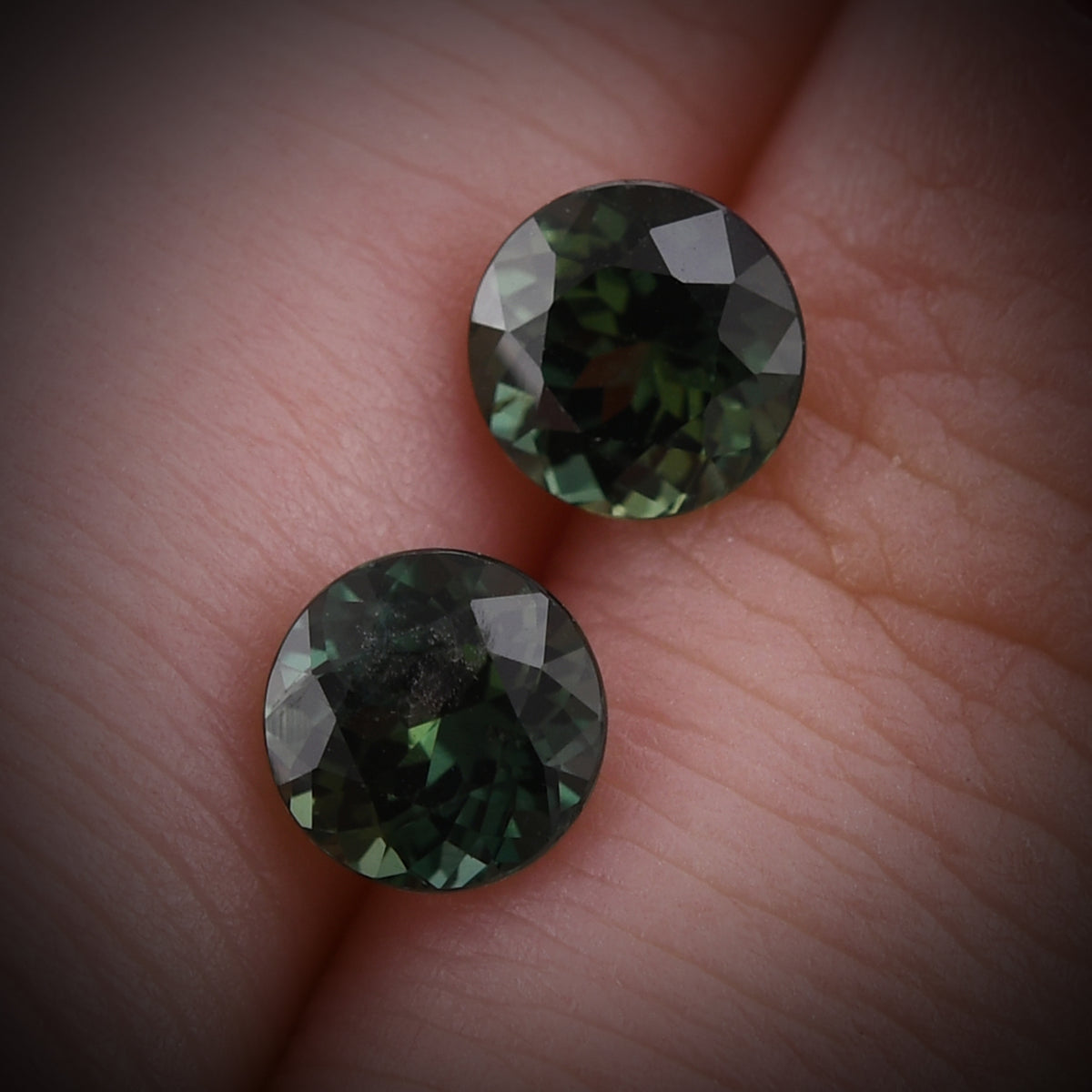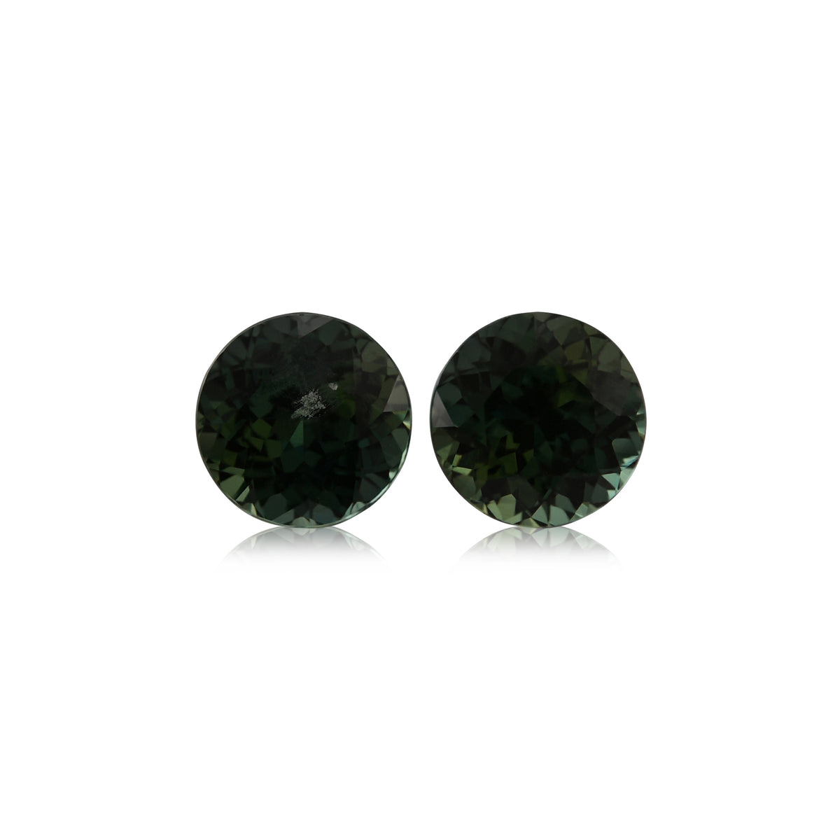 A well matched pair of green, round shape Sapphire gemstones, total weight 2.18cts. The stones have amazing presence and can be purchased as a loose pair or set as a pair of earrings in a Leibish setting style or custom design.
