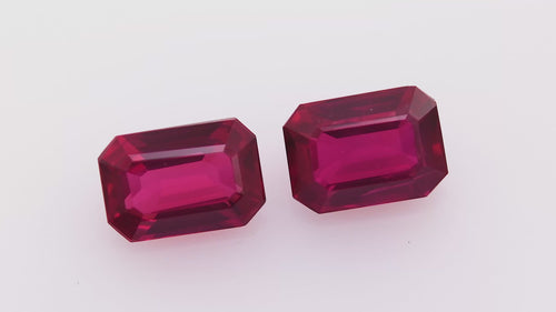 Unit price / perDiscover the captivating allure of these 2.27-carat red Mozambican rubies, expertly cut in an elegant emerald shape. Their transparent clarity and vibrant color, enhanced by heat treatment, make them a stunning choice for fine jewelry.