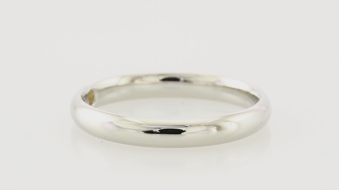 This platinum comfort fit domed wedding band features a subtle 0.02-carat citrine set inside the band, combining durability with a unique touch of color for understated elegance.
