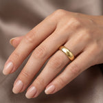 Polished metal band ring, with internal comfort fit and external domed profile, available in gold or platinum, 5MM wide.