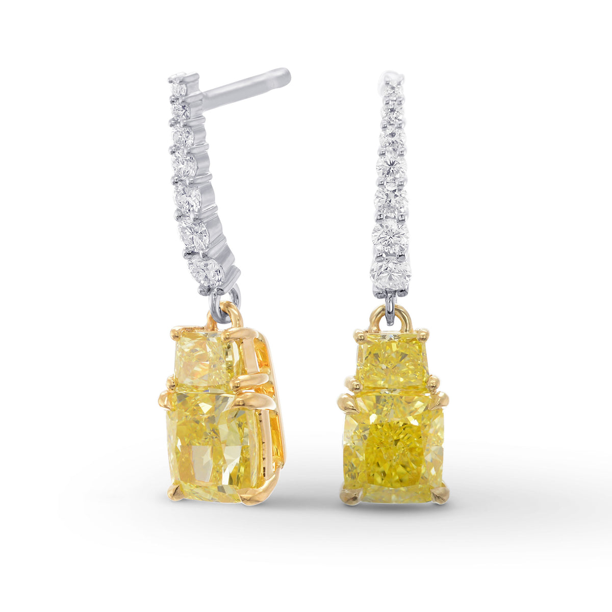 LEIBISH.Fancy Intense Yellow Cushion and Vivid Yellow Taper Diamond Drop Earrings