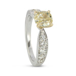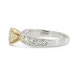Fancy Yellow Cushion Diamond Side Stone Ring
