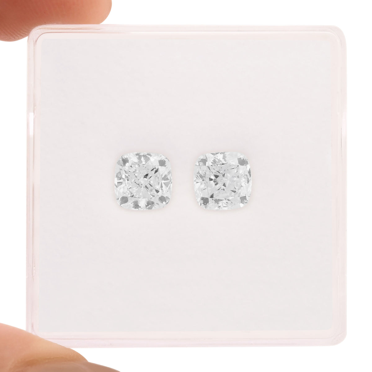 Two beautiful cushion-cut diamonds totaling 1.42 carats. Each stone is F color and VS1 clarity, certified by the GIA. Perfect for creating a matched pair of earrings or a distinctive two-stone ring. High quality and ready for your custom design.