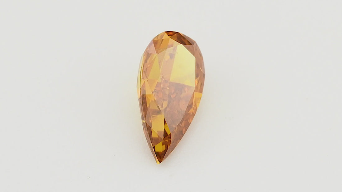 1.05 carat, Fancy Deep Brownish Yellowish Orange, pear shape diamond with I1 clarity, graded by GIA. A splendid orange diamond with a captivating pumpkin color saturation. The stone has Good polish and Very Good symmetry.