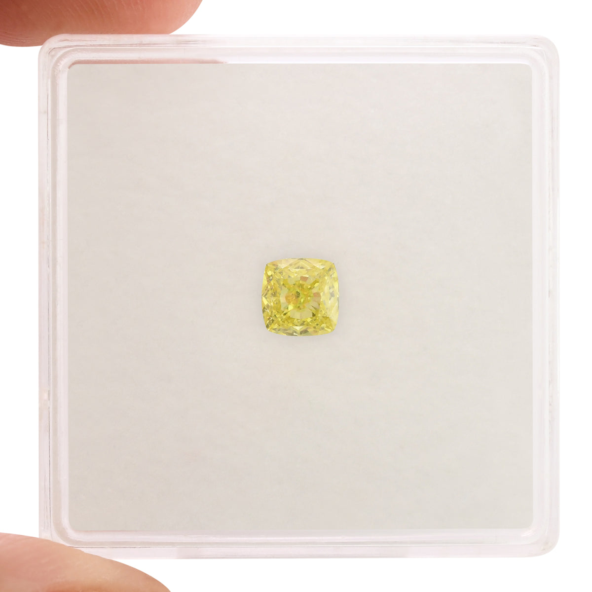 0.42 Carat Fancy Intense Yellow Cushion Diamond VVS1 GIA