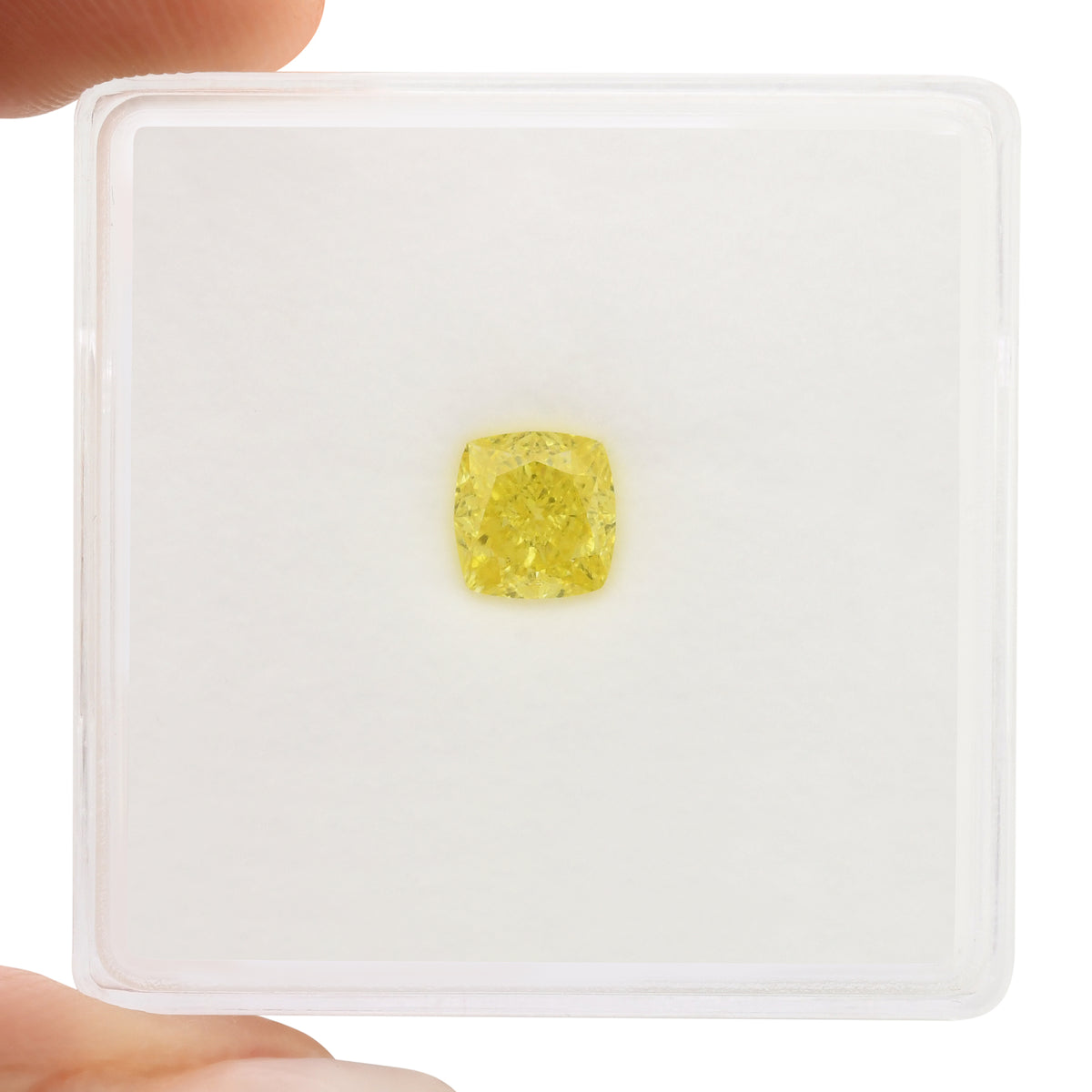 0.76 Carat Fancy Vivid Yellow Cushion Diamond VVS1 GIA