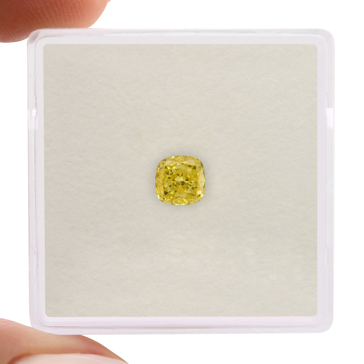 0.59 Carat Fancy Vivid Yellow Cushion Diamond SI2 GIA